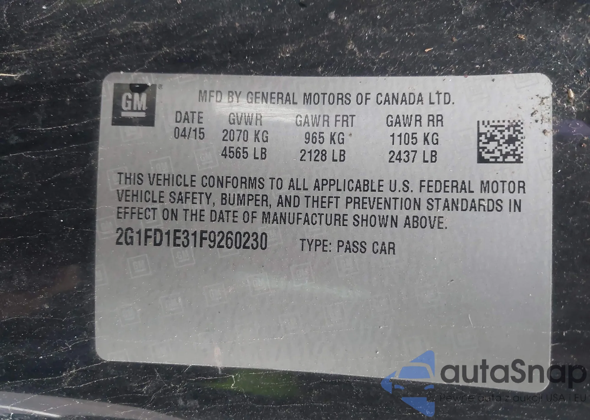 VIN: 2G1FD1E31F9260230
