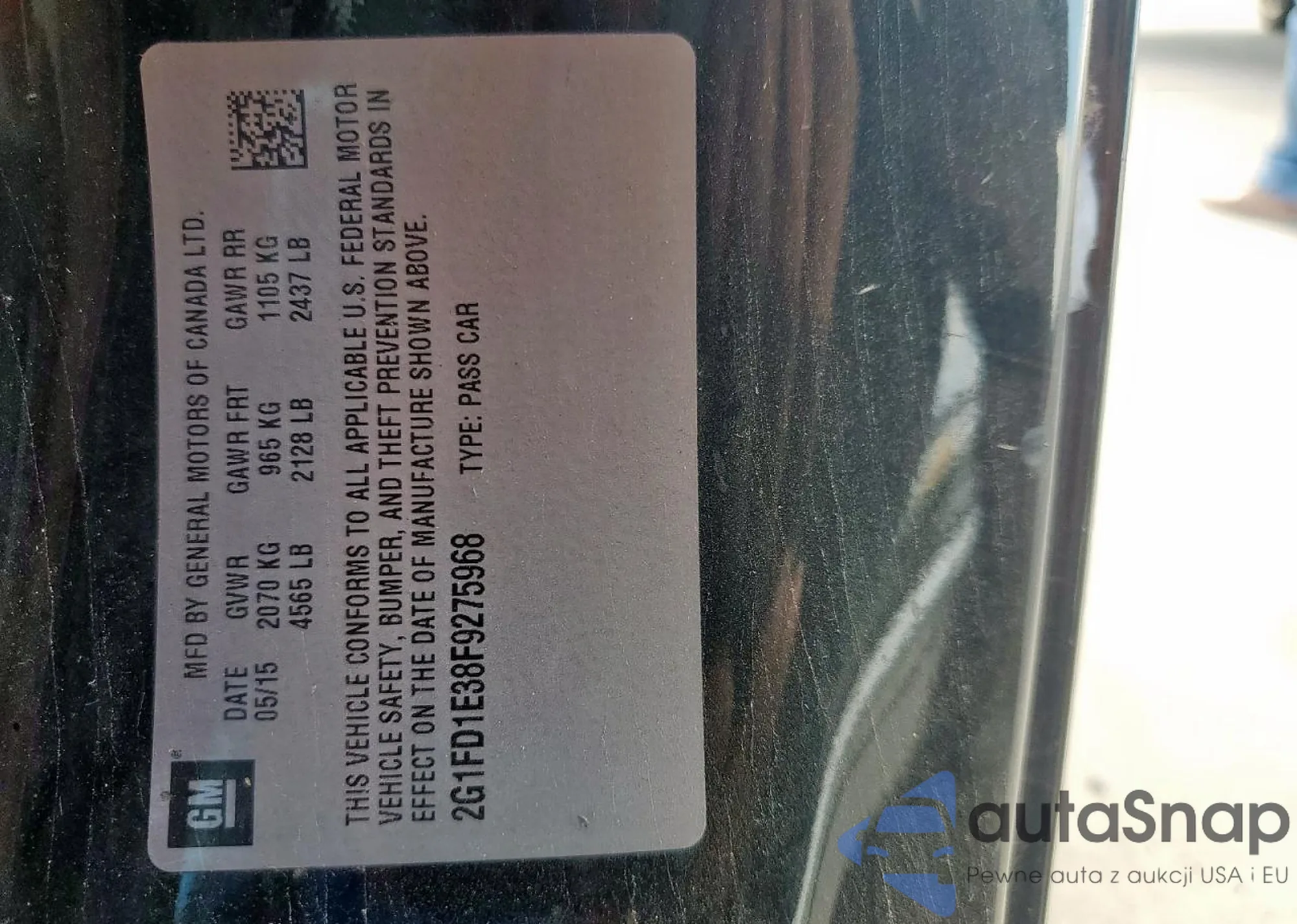 • VIN: 2G1FD1E38F9275968