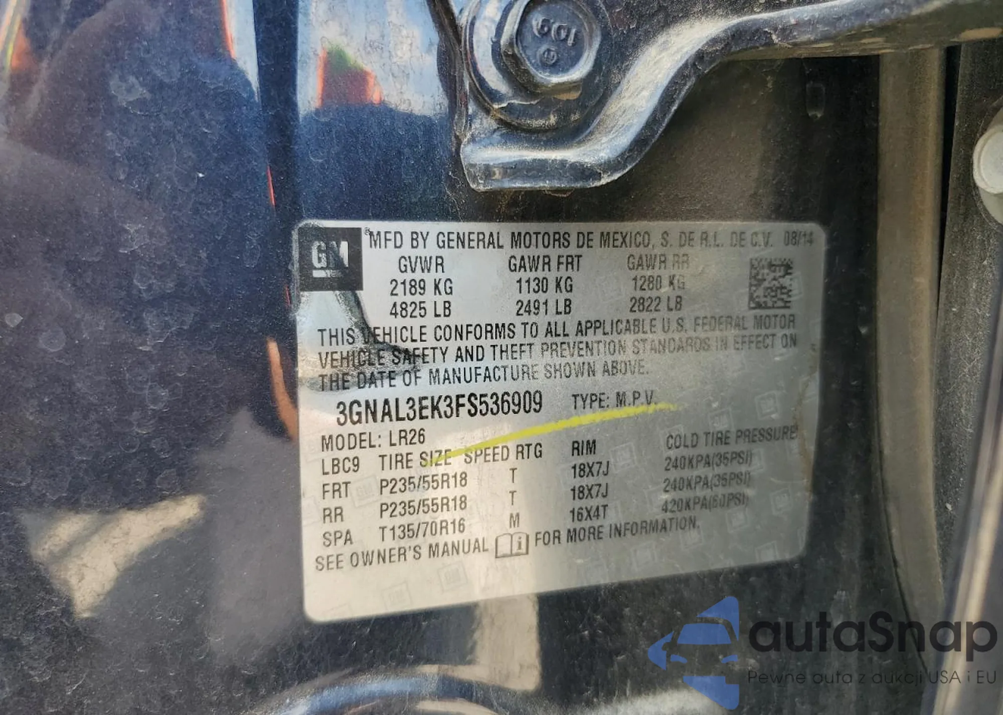 VIN: 3GNAL3EK3FS536909