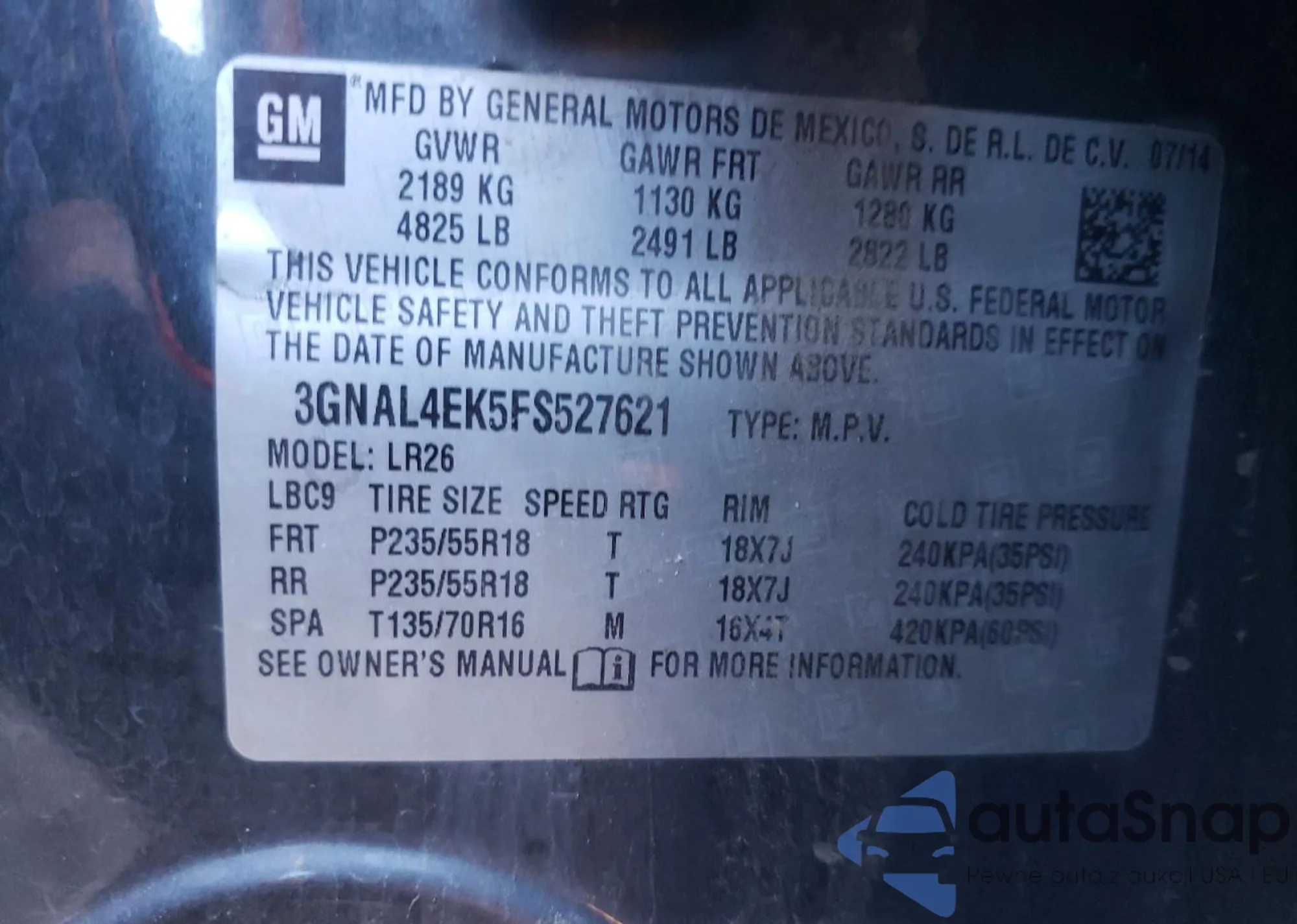 VIN: 3GNAL4EK5FS527621