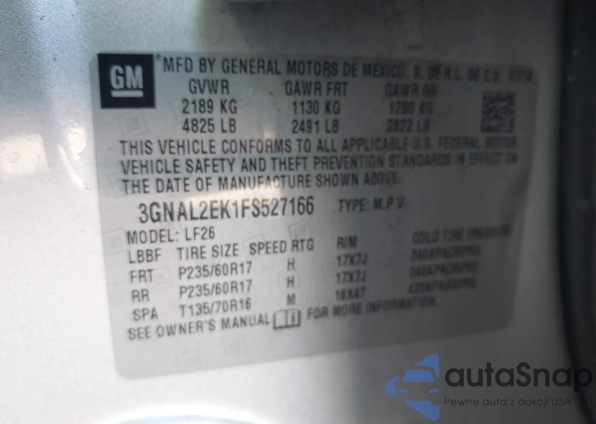VIN: 3GNAL2EK1FS527166
