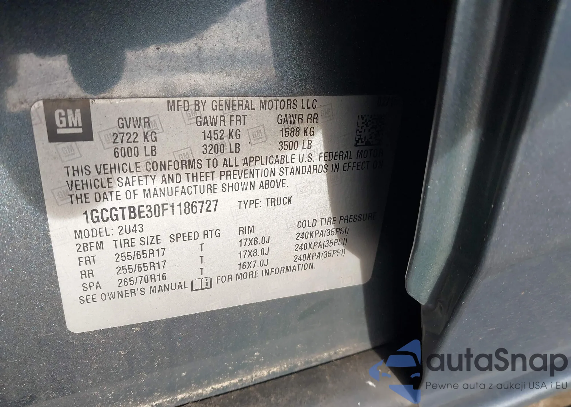 VIN: 1GCGTBE30F1186727