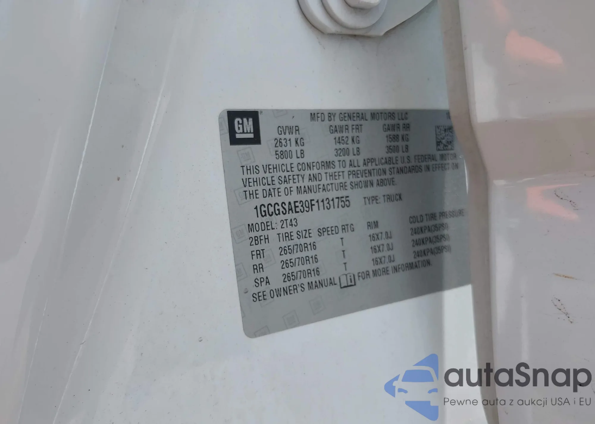 • VIN: 1GCGSAE39F1131755