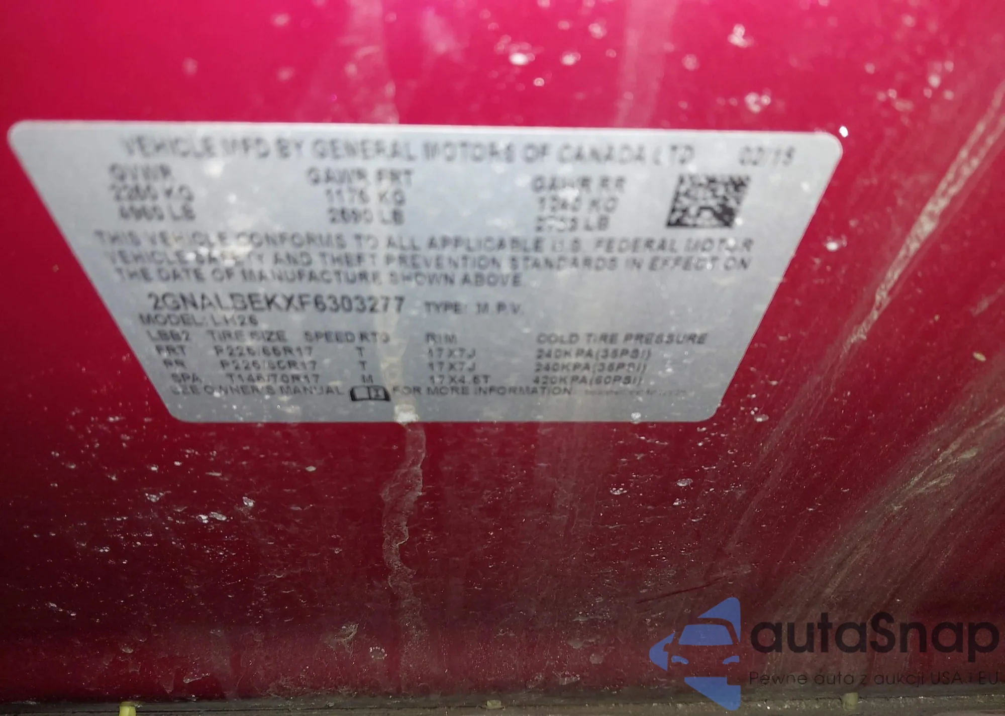 Автомобиль Chevrolet Equinox 2015 (VIN 2GNALBEKXF6303277) ранее не участвовал в торгах. Документы чистые, пробег соответствует или ниже среднего по рынку. Продаётся страховой компанией — рекомендуем покупку. Доставка в порт займет около 6–8 недель.