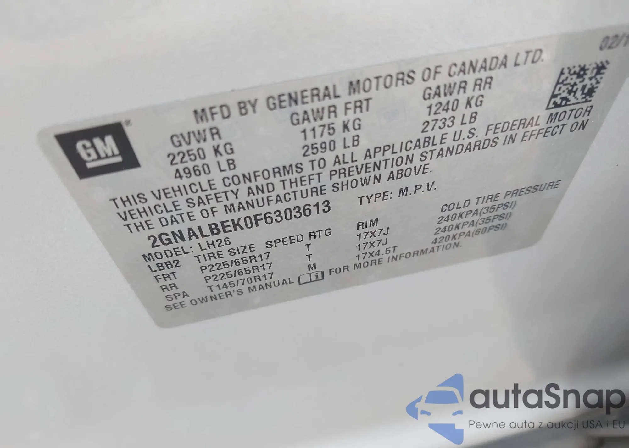 VIN: 2GNALBEK0F6303613