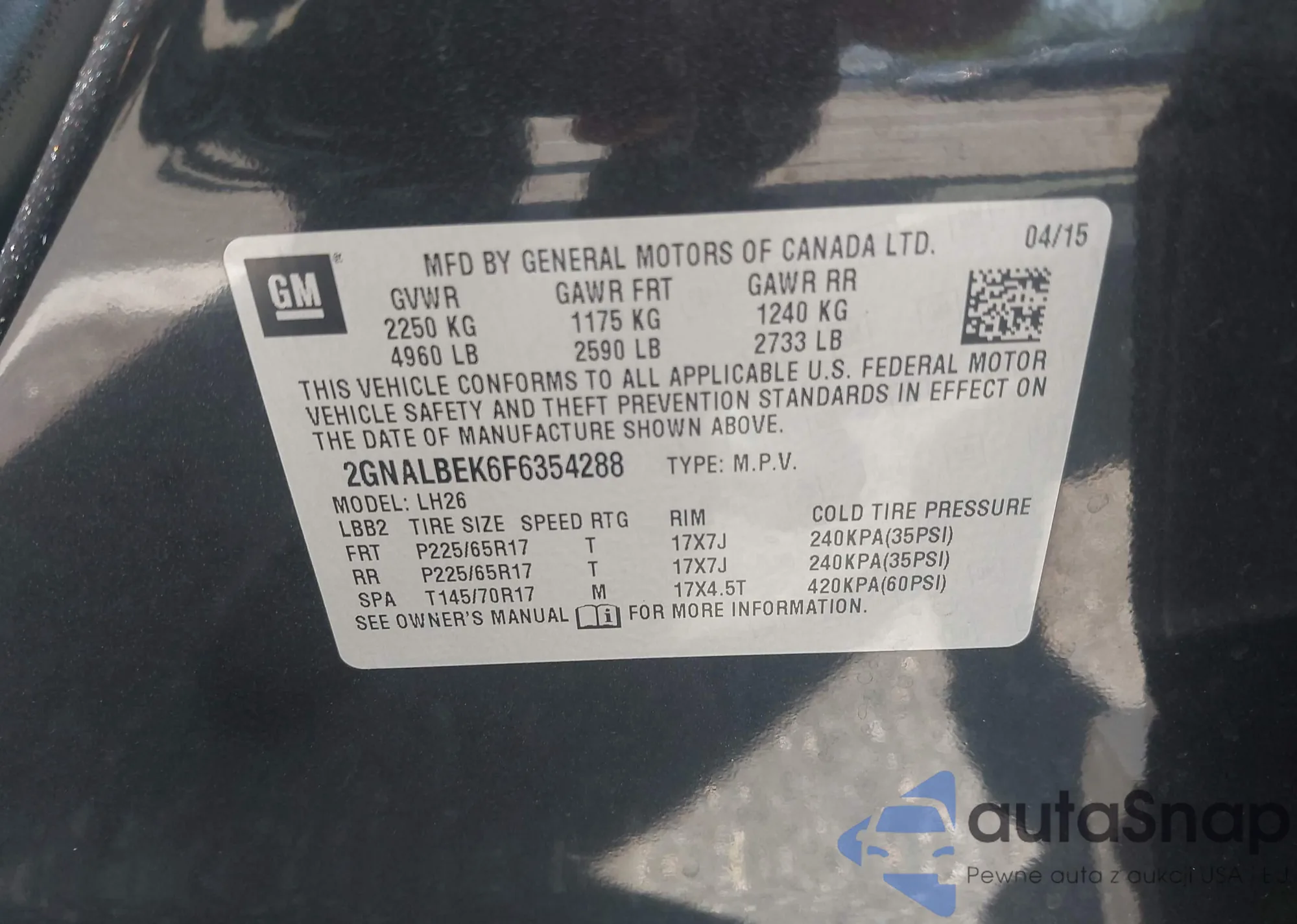 VIN: 2GNALBEK6F6354288