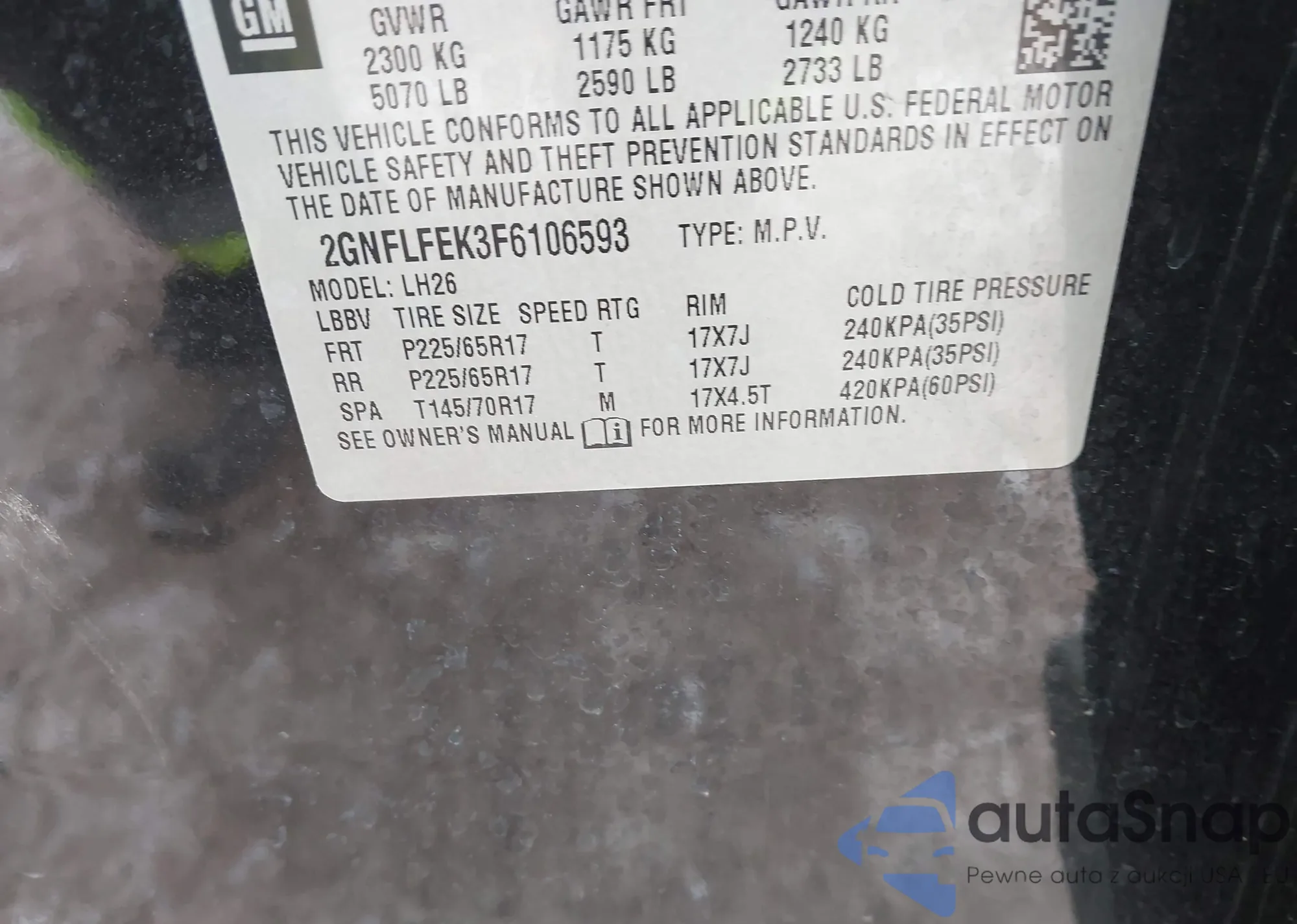 VIN: 2GNFLFEK3F6106593