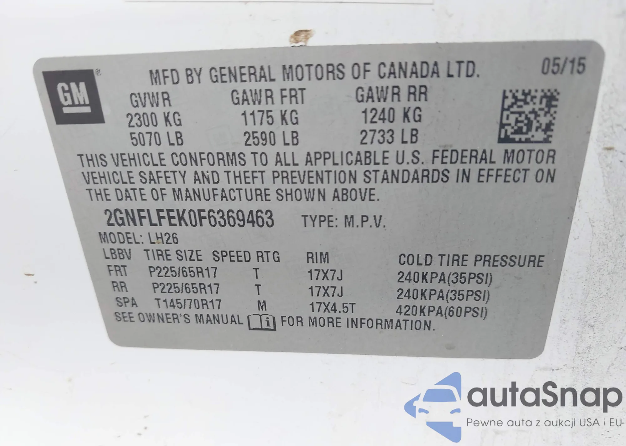 VIN: 2GNFLFEK0F6369463