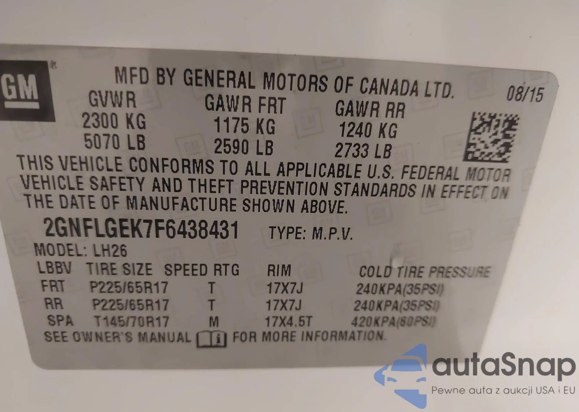 VIN: 2GNFLGEK7F6438431