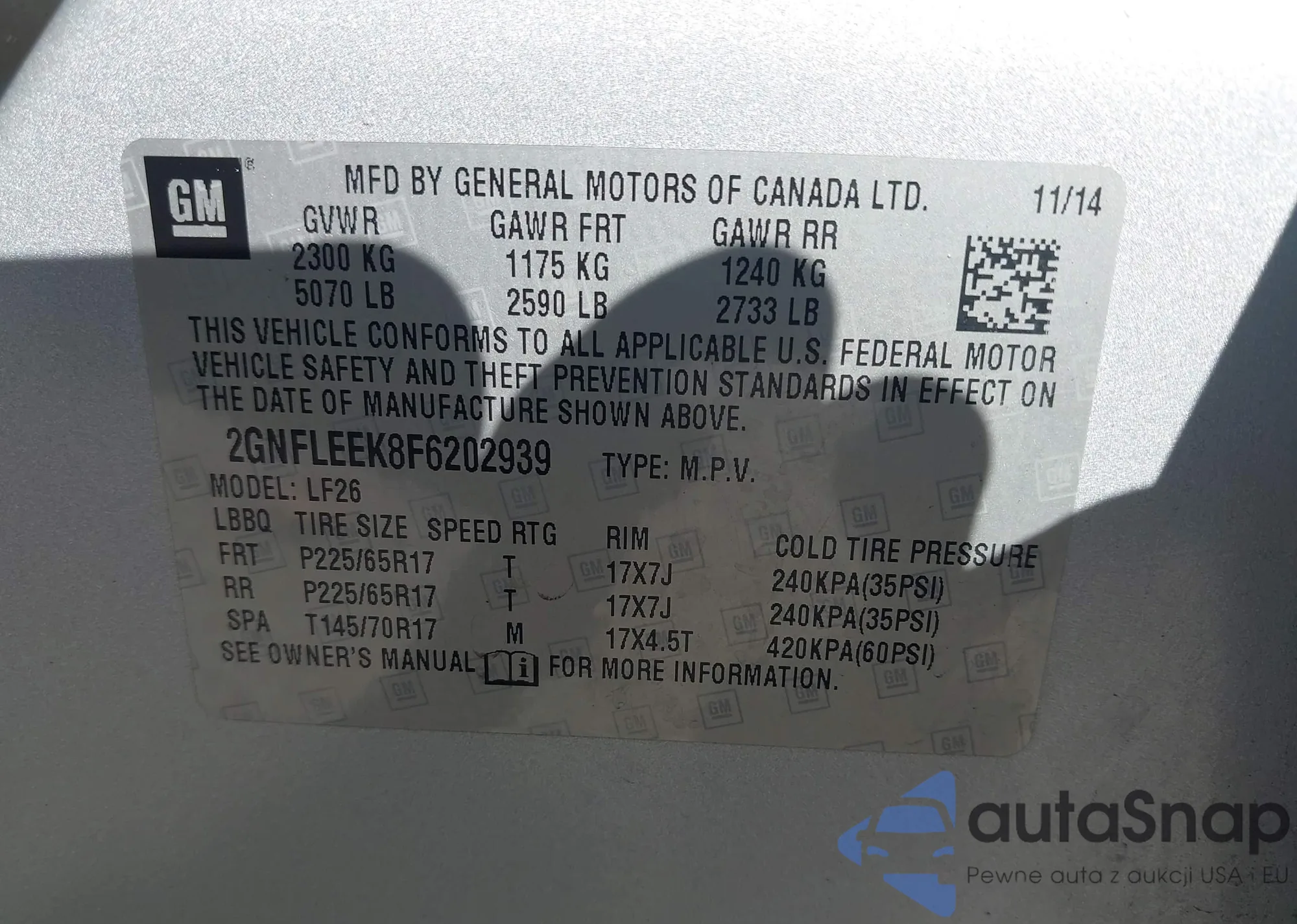 VIN: 2GNFLEEK8F6202939