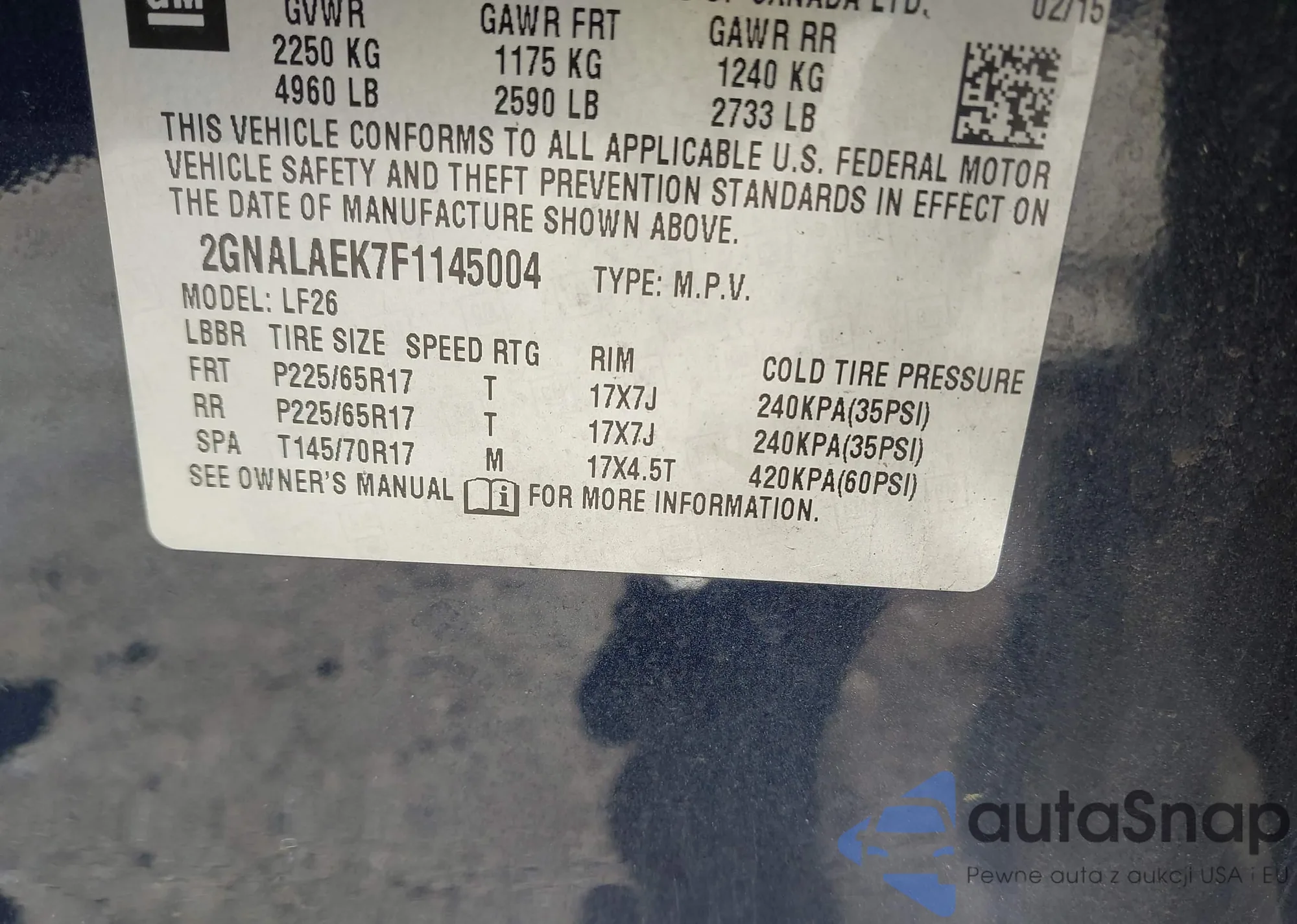 VIN: 2GNALAEK7F1145004