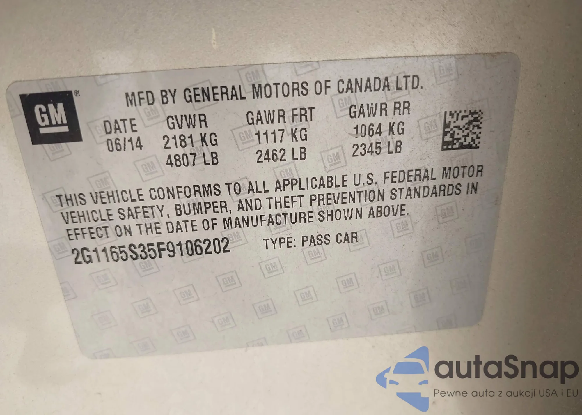 VIN: 2G1165S35F9106202