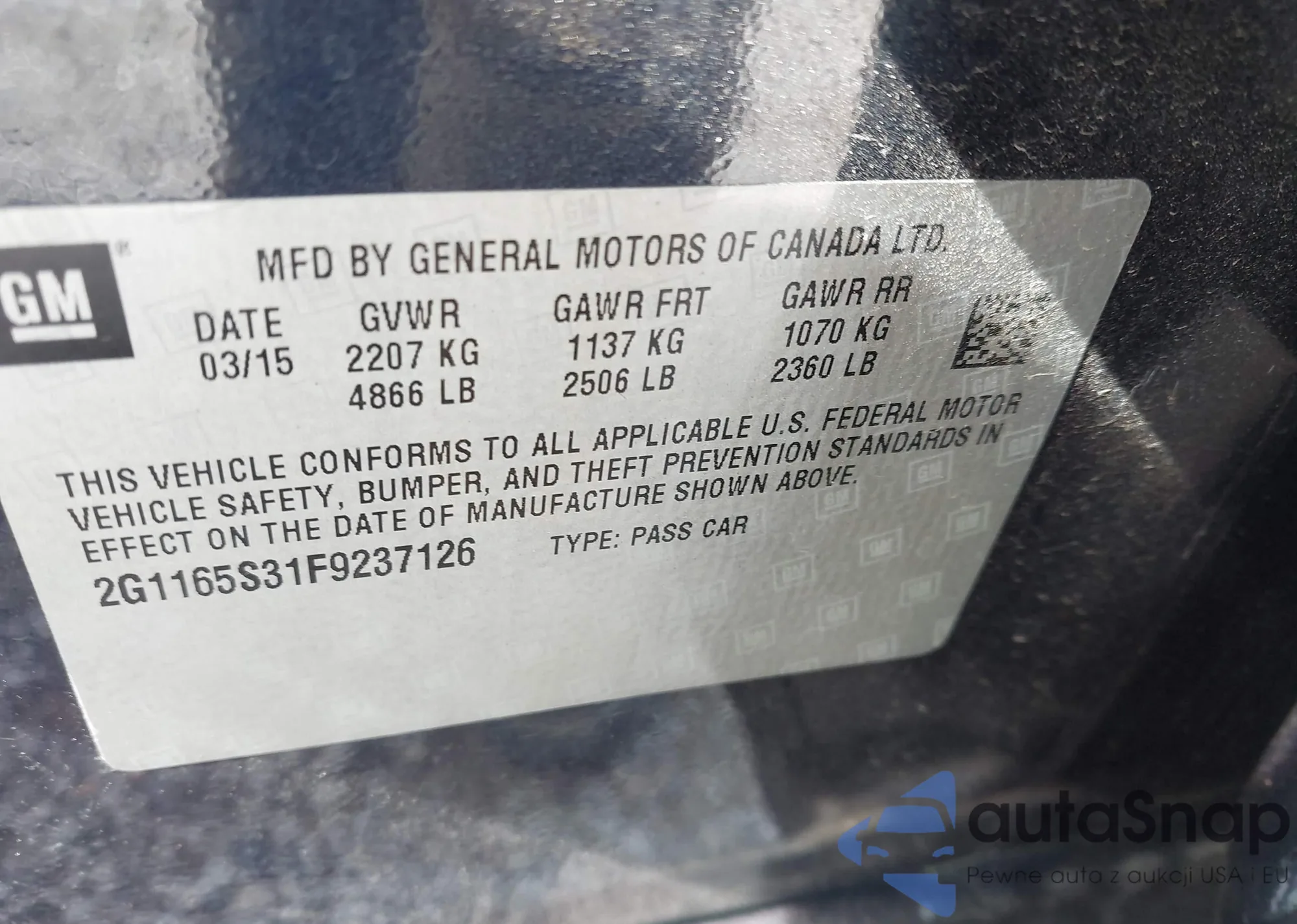 VIN: 2G1165S31F9237126