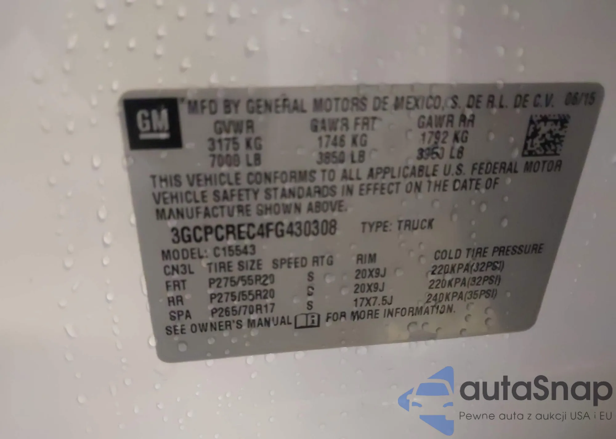 VIN: 3GCPCREC4FG430308