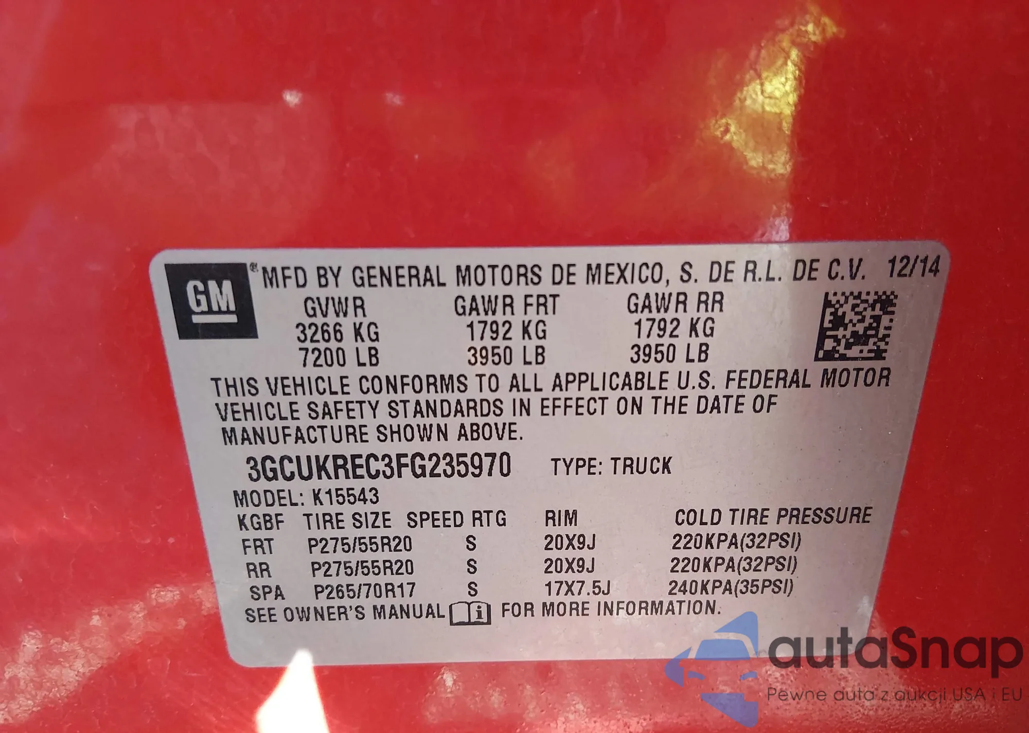 Автомобиль Chevrolet Silverado 2015 (VIN 3GCUKREC3FG235970) ранее не участвовал в торгах. Документы чистые, пробег соответствует или ниже среднего по рынку. Продаётся страховой компанией — рекомендуем покупку. Доставка в порт займет около 6–8 недель.