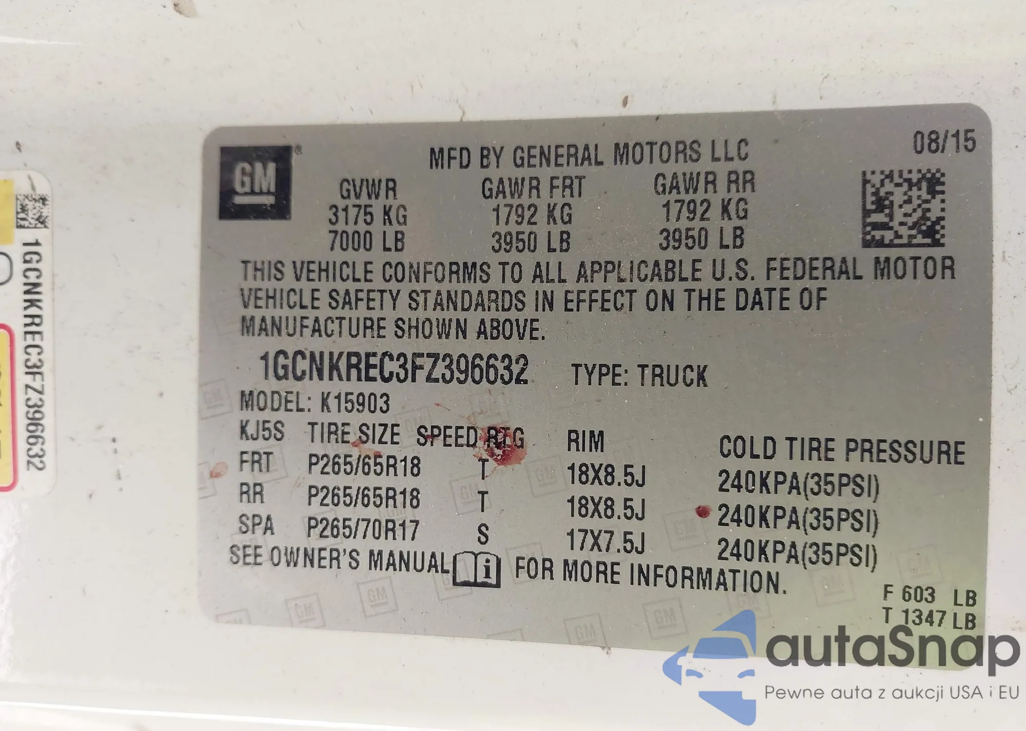• VIN: 1GCNKREC3FZ396632