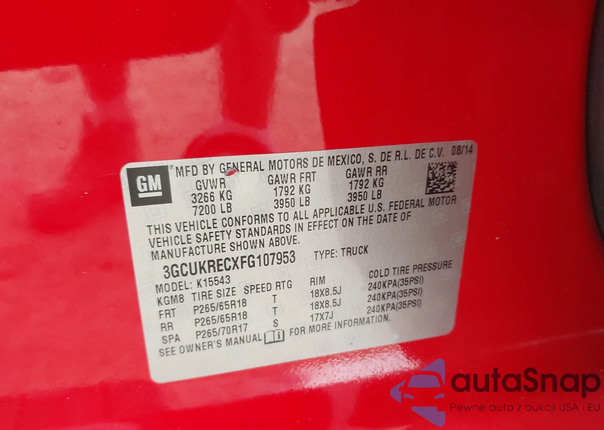 VIN: 3GCUKRECXFG107953