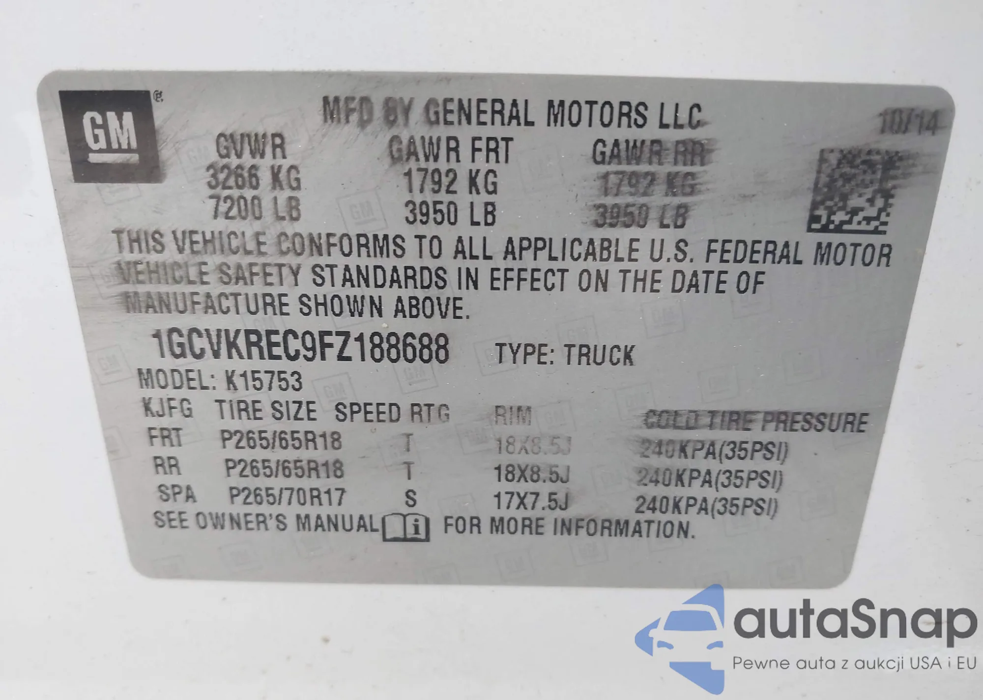 • VIN: 1GCVKREC9FZ188688