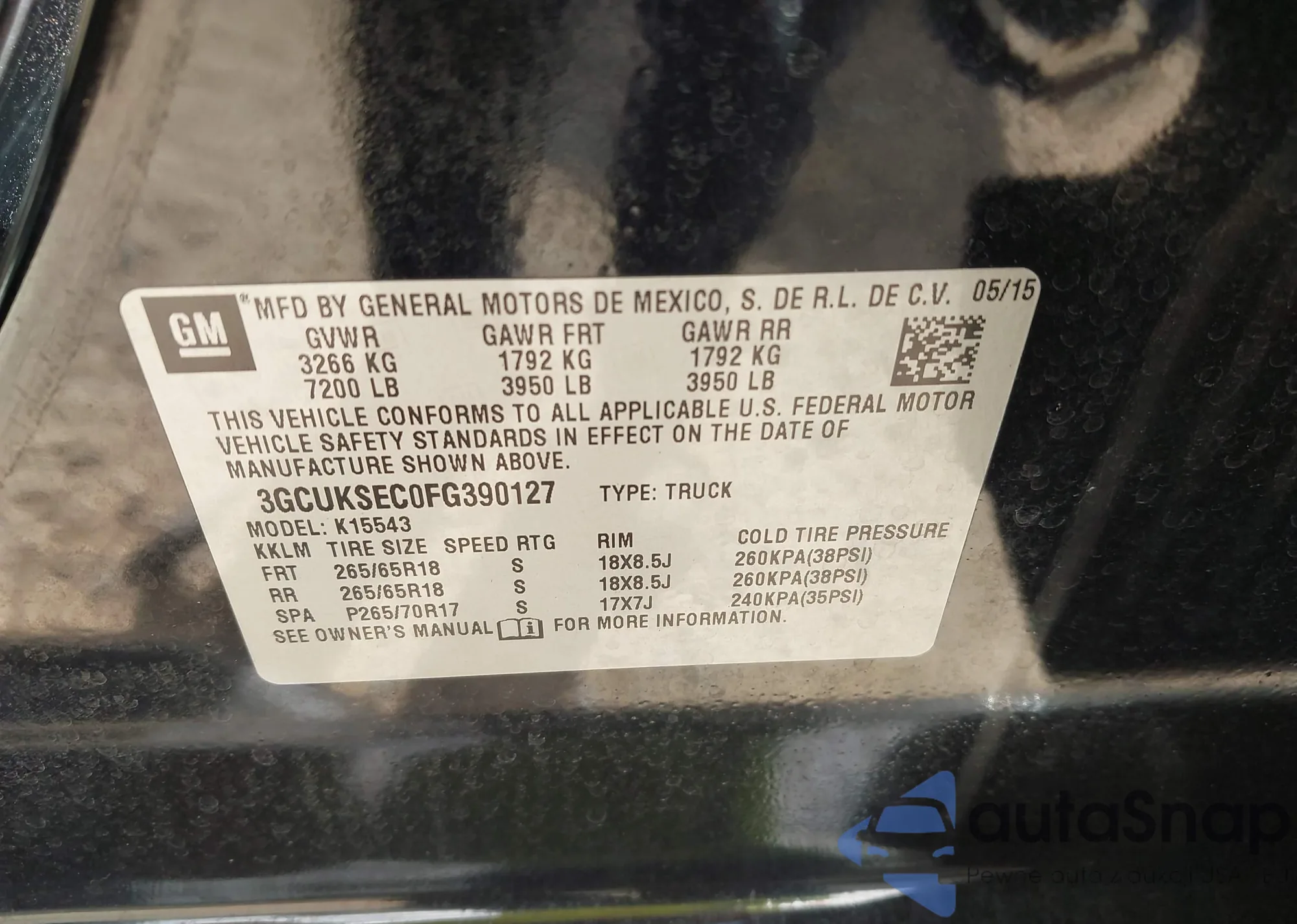 VIN: 3GCUKSEC0FG390127