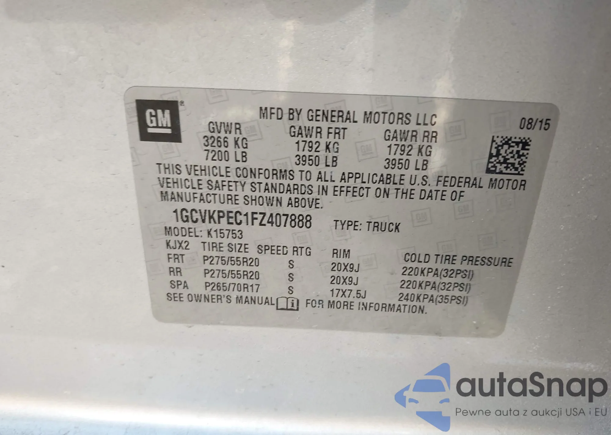 VIN: 1GCVKPEC1FZ407888