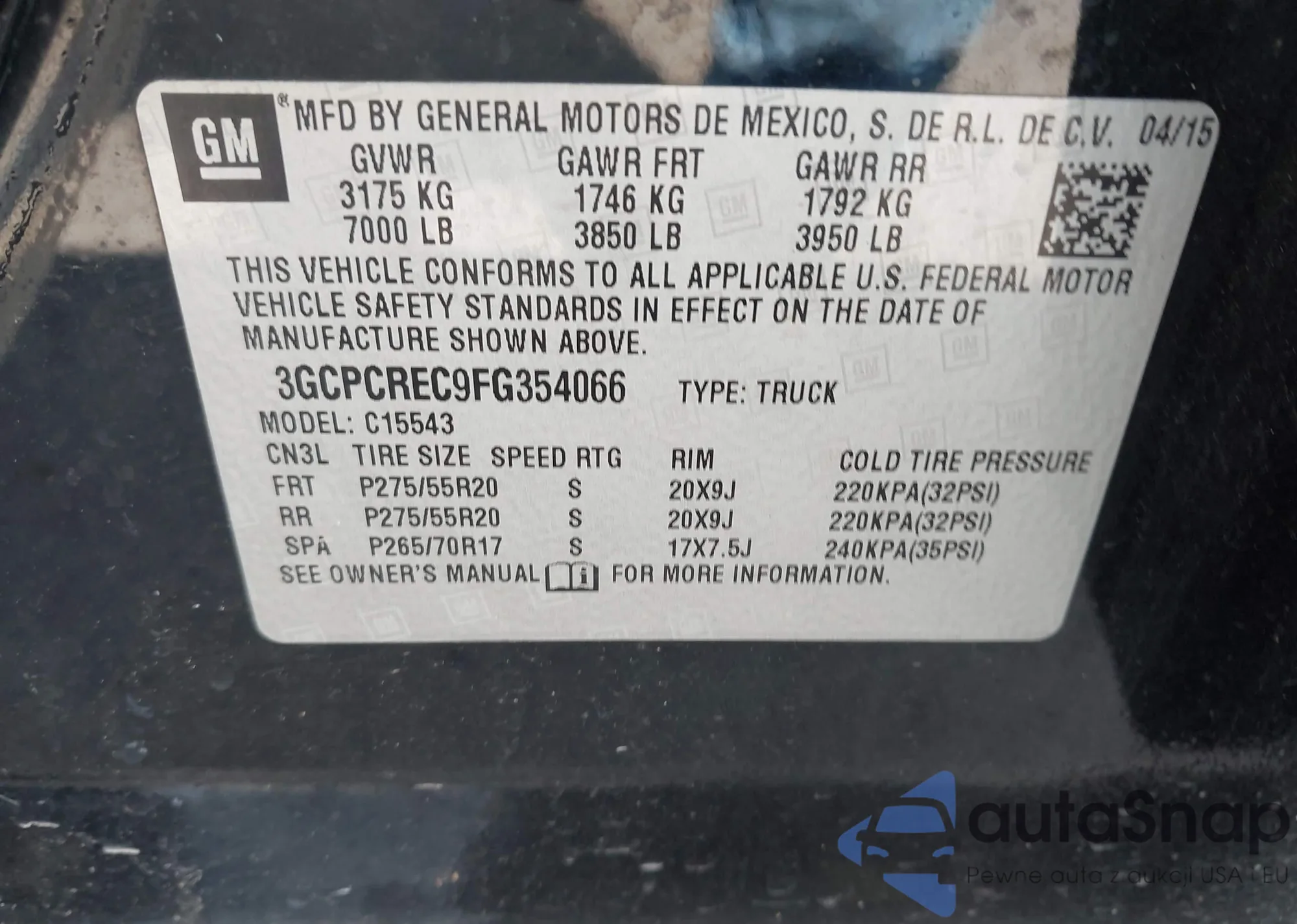 VIN: 3GCPCREC9FG354066