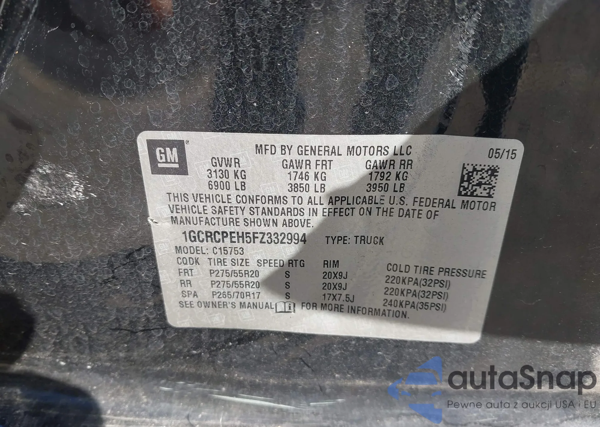 Автомобиль Chevrolet Silverado 2015 (VIN 1GCRCPEH5FZ332994) ранее не участвовал в торгах. Документы чистые, пробег соответствует или ниже среднего по рынку. Продаётся страховой компанией — рекомендуем покупку. Доставка в порт займет около 6–8 недель.