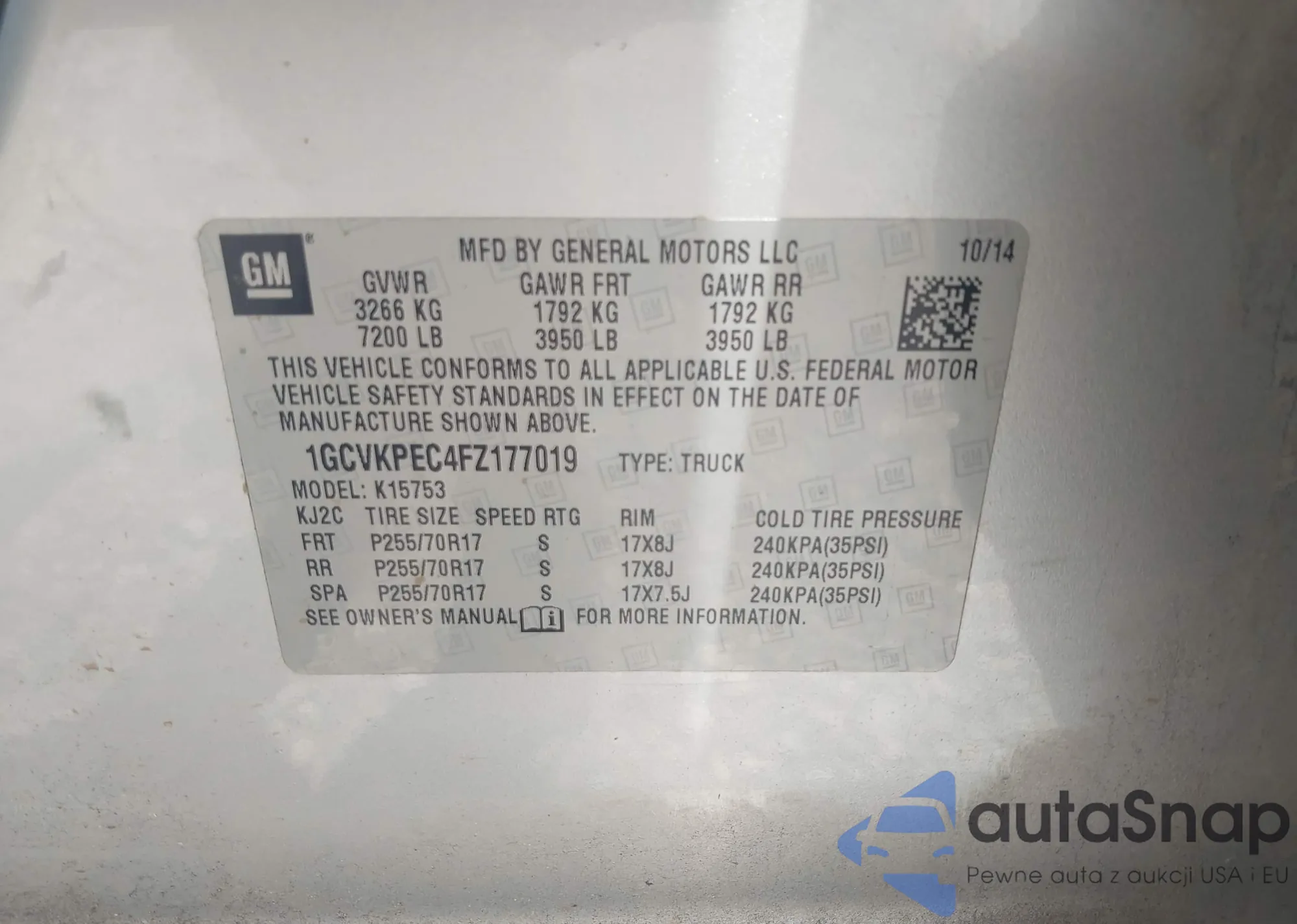 VIN: 1GCVKPEC4FZ177019