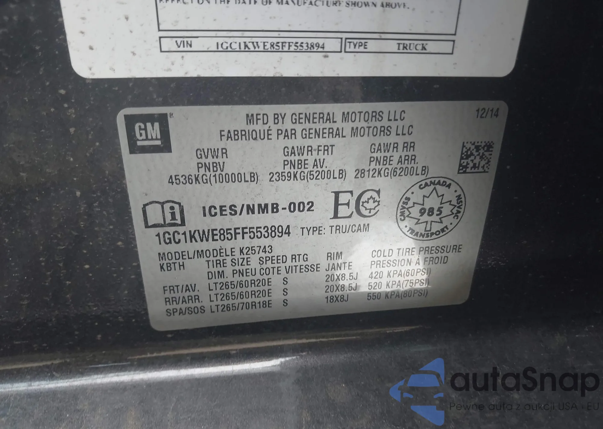 VIN: 1GC1KWE85FF553894