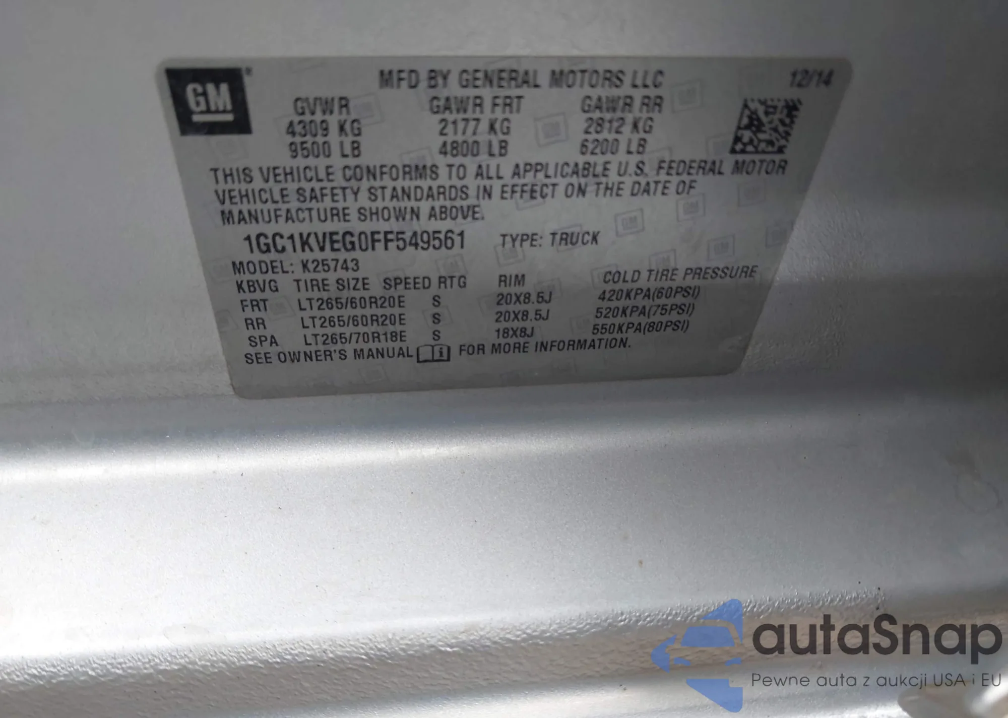 Автомобиль Chevrolet Silverado 2015 (VIN 1GC1KVEG0FF549561) ранее не участвовал в торгах. Документы чистые, пробег соответствует или ниже среднего по рынку. Продаётся страховой компанией — рекомендуем покупку. Доставка в порт займет около 6–8 недель.