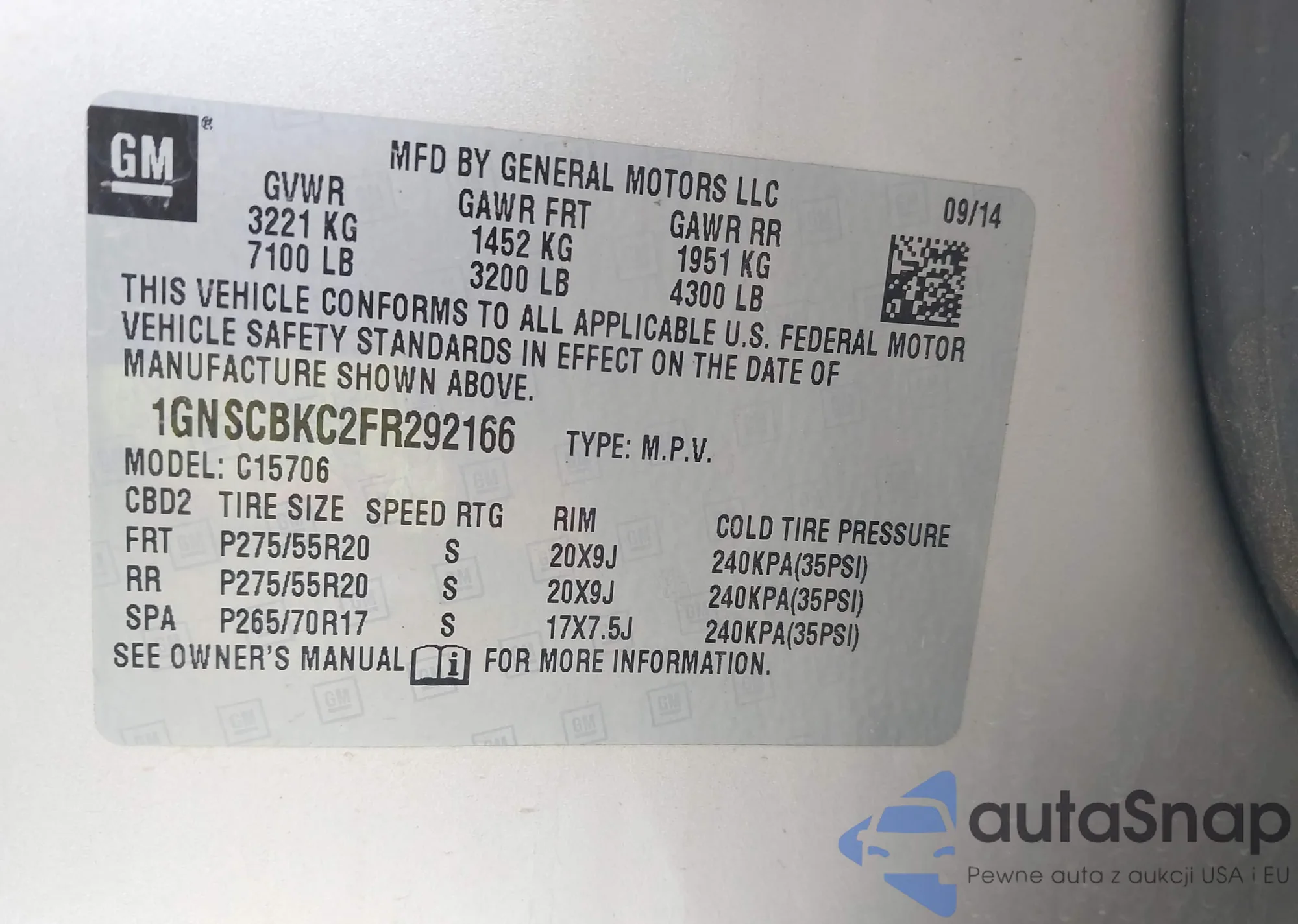 • VIN: 1GNSCBKC2FR292166
