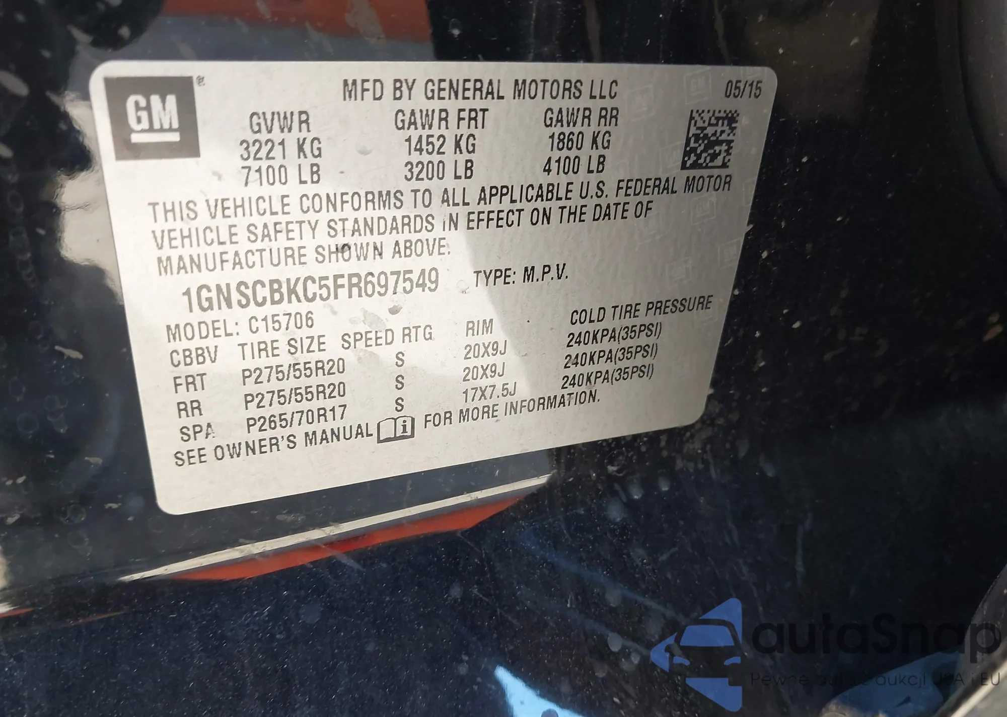 Автомобиль Chevrolet Tahoe 2015 (VIN 1GNSCBKC5FR697549) ранее не участвовал в торгах. Документы чистые, пробег соответствует или ниже среднего по рынку. Продаётся страховой компанией — рекомендуем покупку. Доставка в порт займет около 6–8 недель.