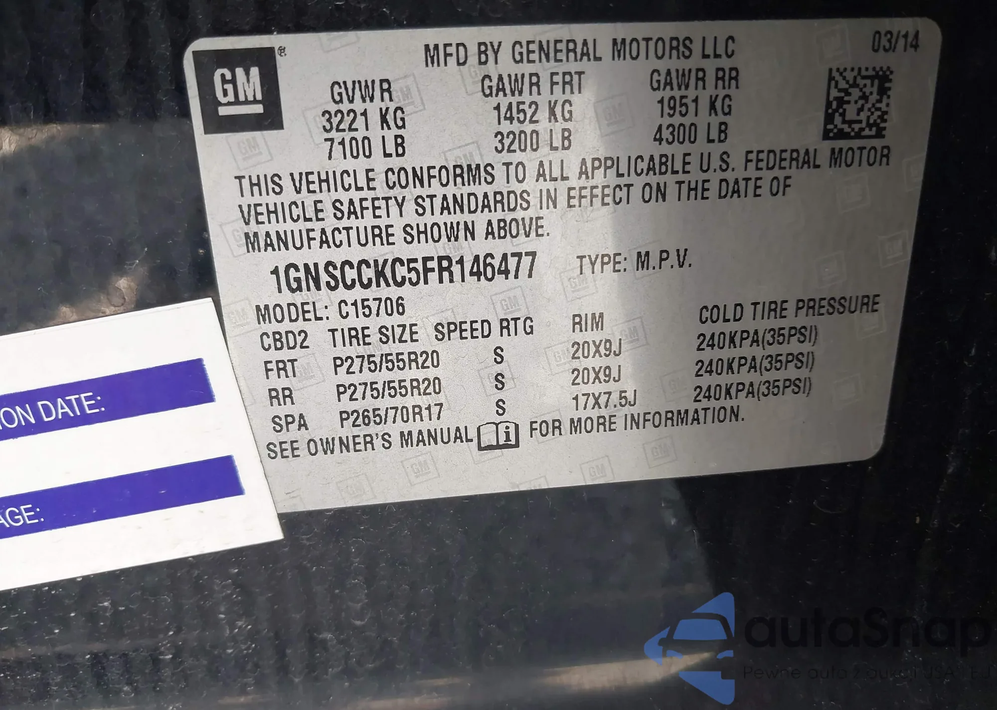 • VIN: 1GNSCCKC5FR146477