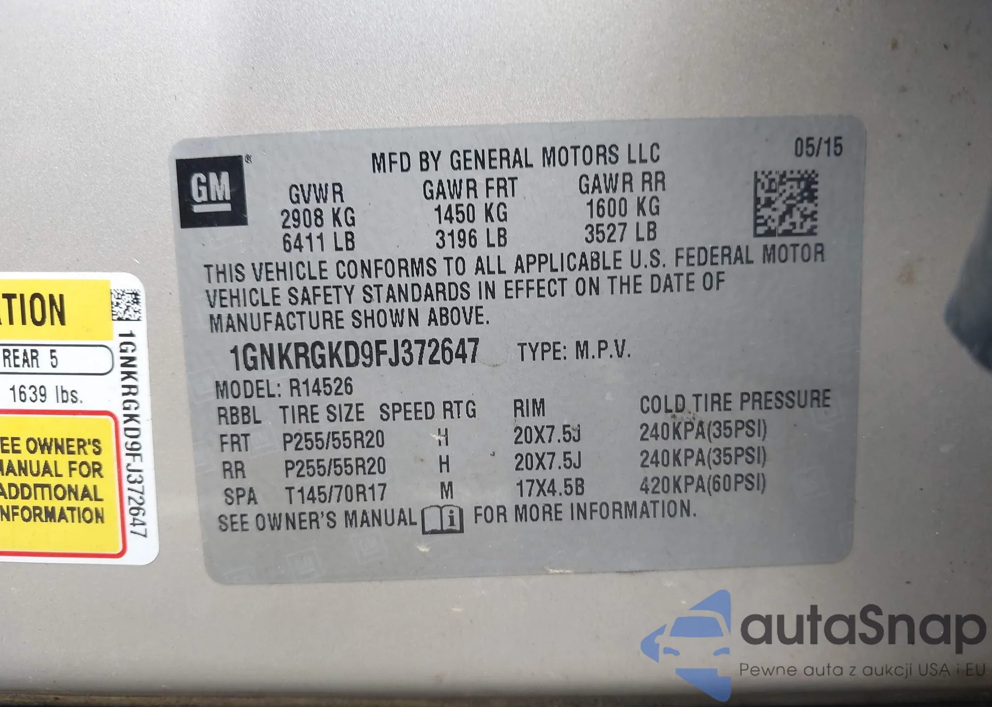 VIN: 1GNKRGKD9FJ372647