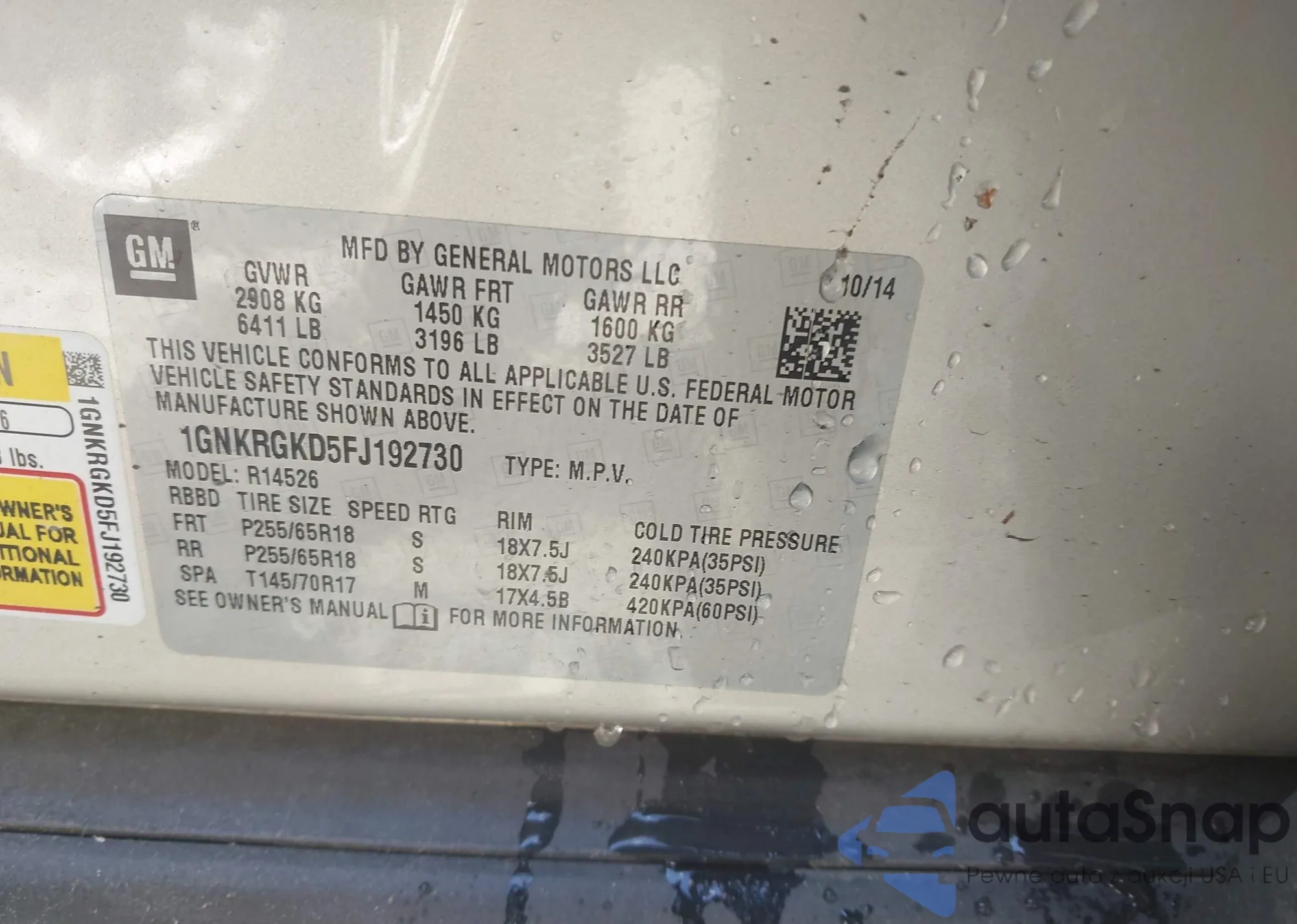 VIN: 1GNKRGKD5FJ192730