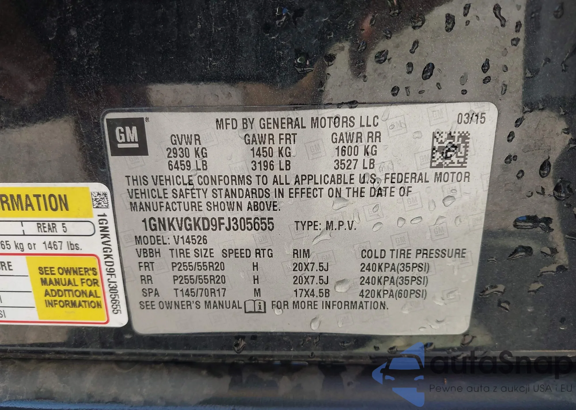VIN: 1GNKVGKD9FJ305655