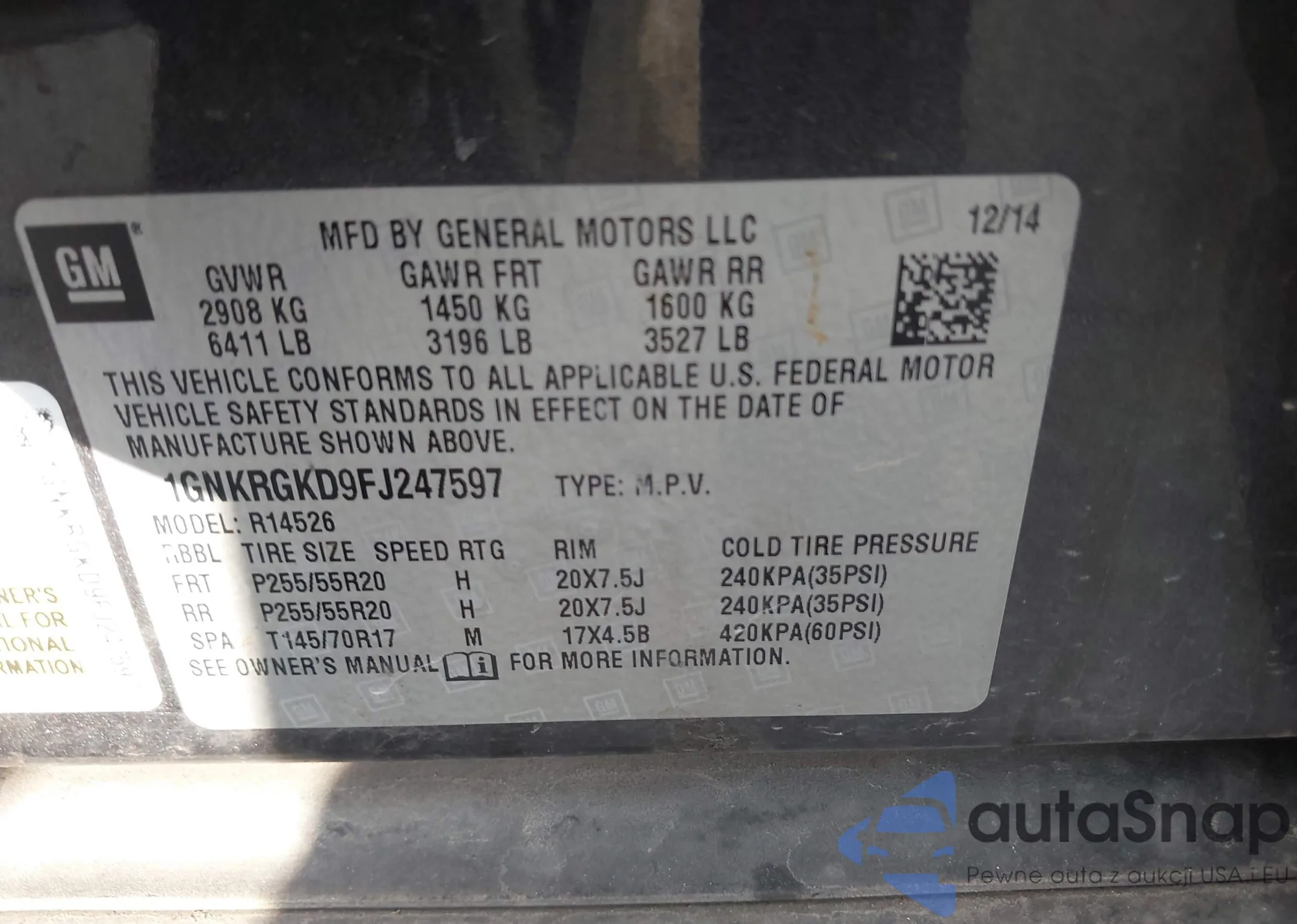 VIN: 1GNKRGKD9FJ247597