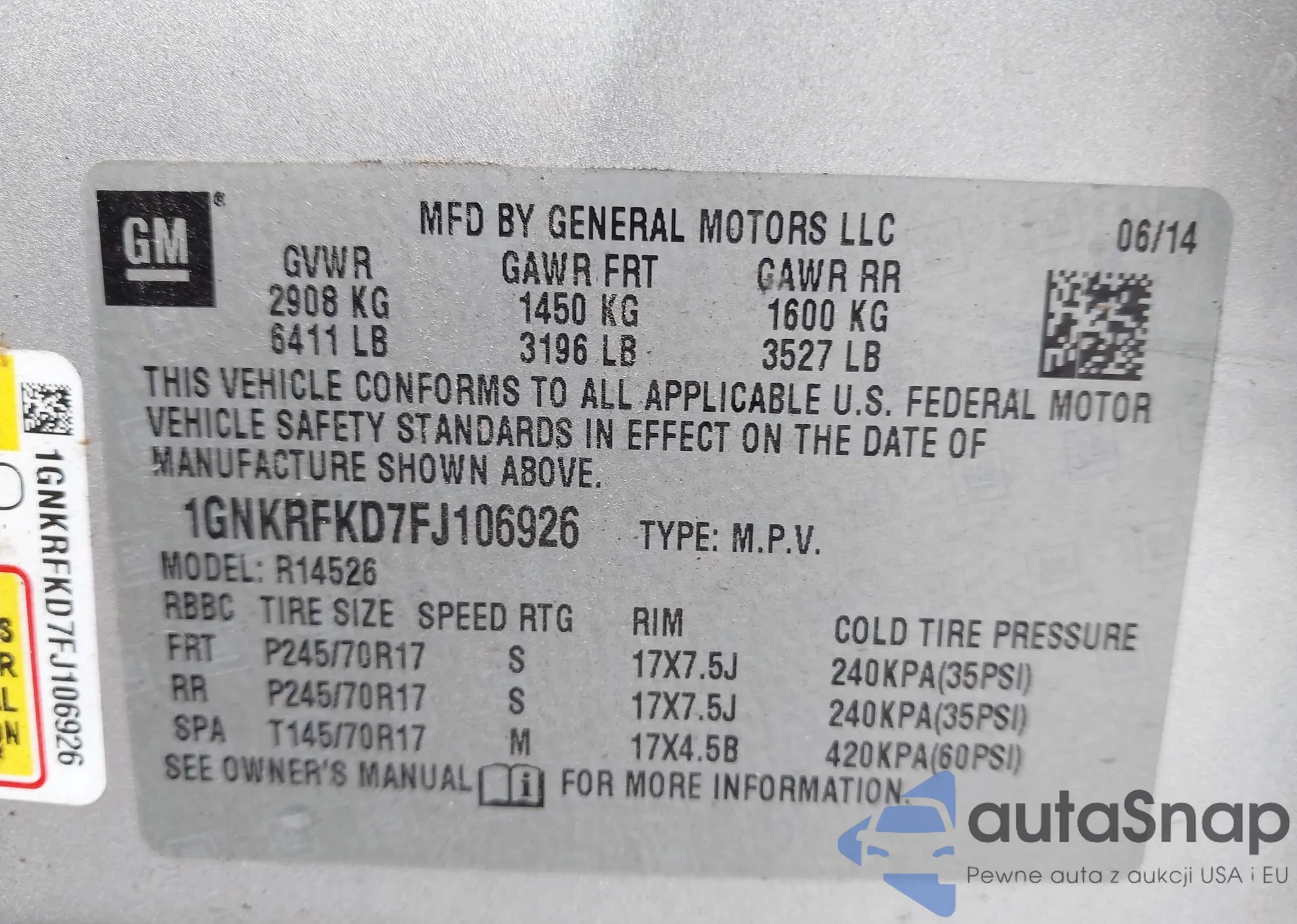 VIN: 1GNKRFKD7FJ106926