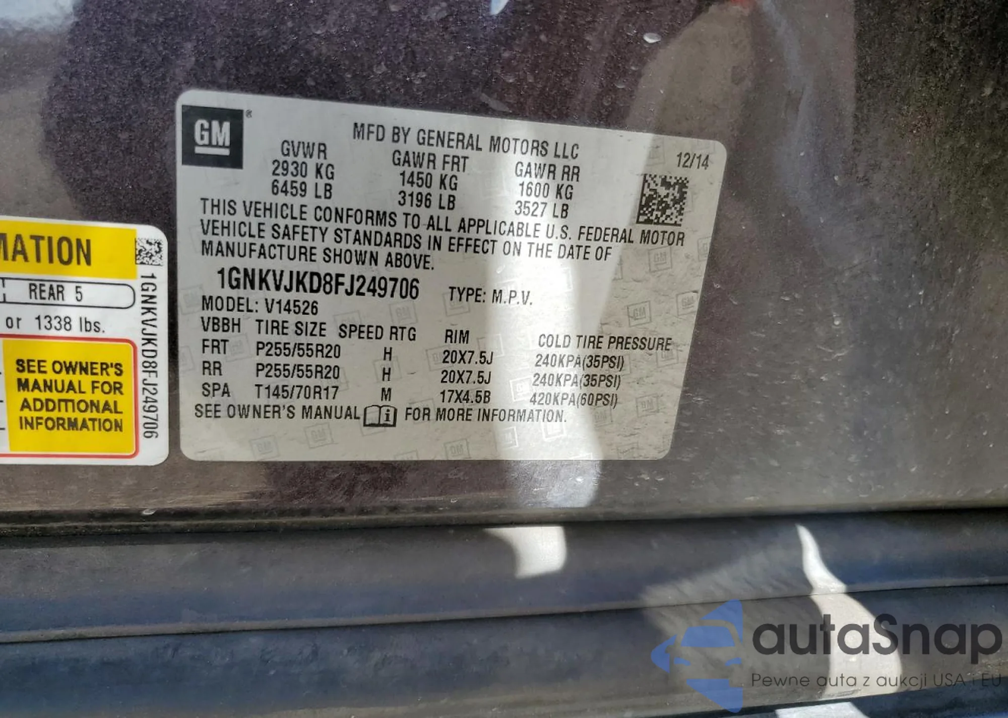 VIN: 1GNKVJKD8FJ249706