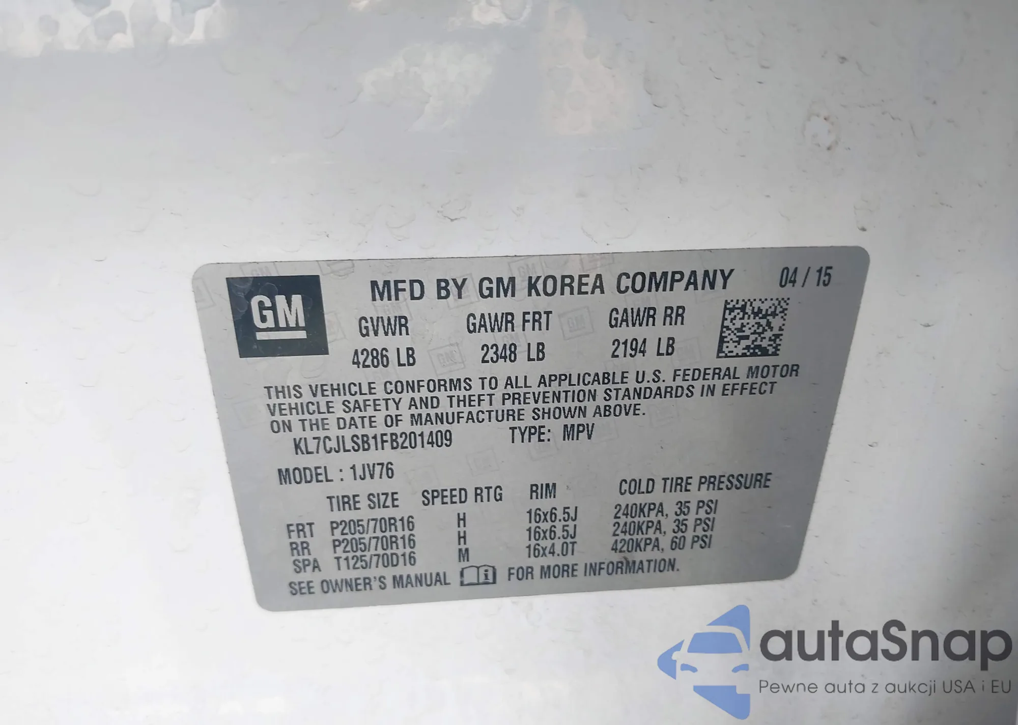 VIN: KL7CJLSB1FB201409