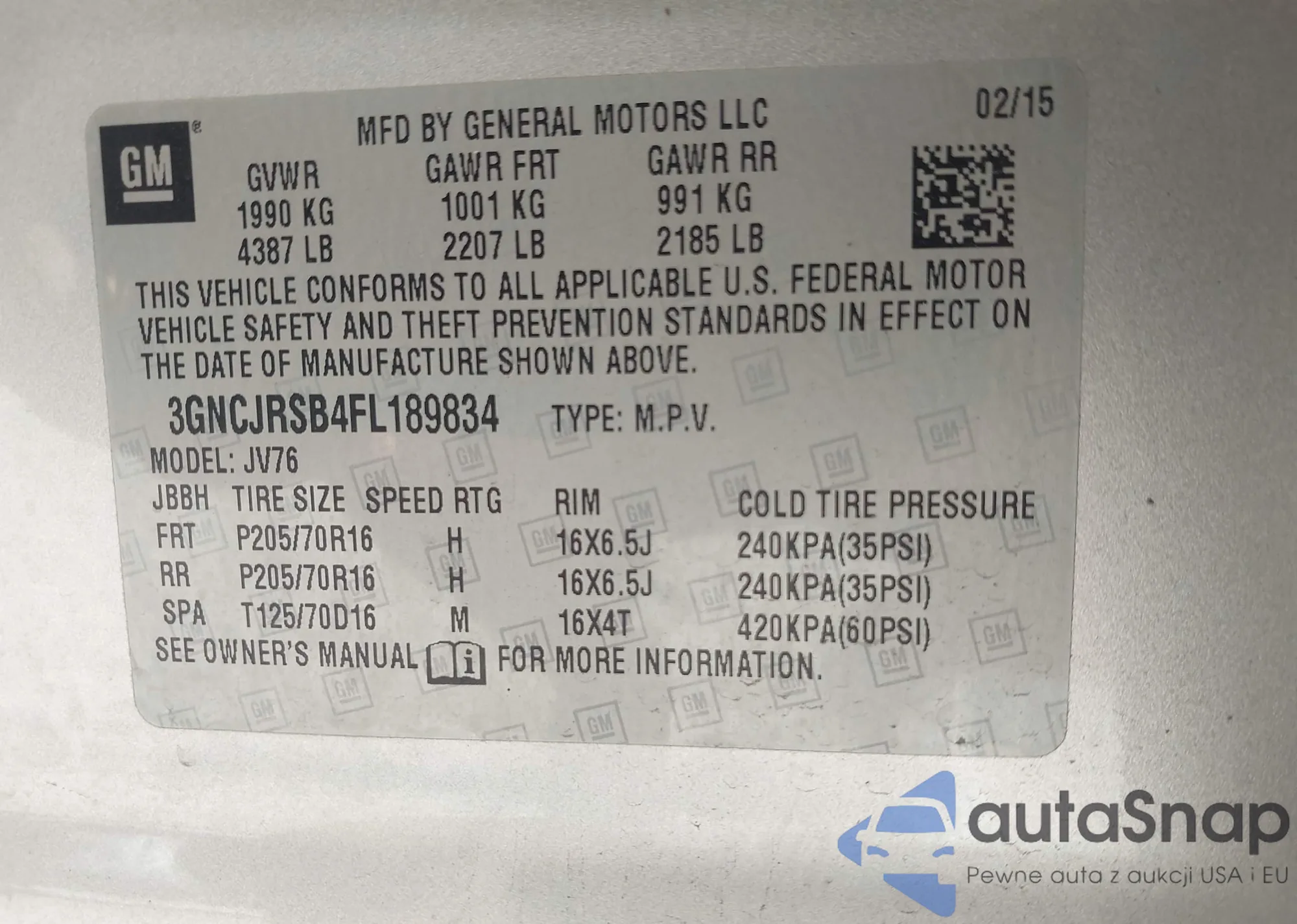 VIN: 3GNCJRSB4FL189834