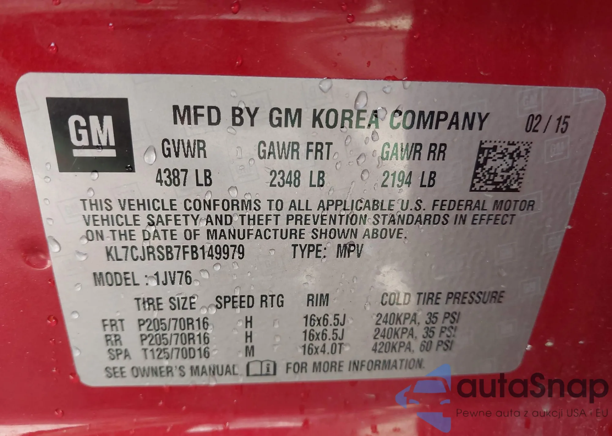 VIN: KL7CJRSB7FB149979