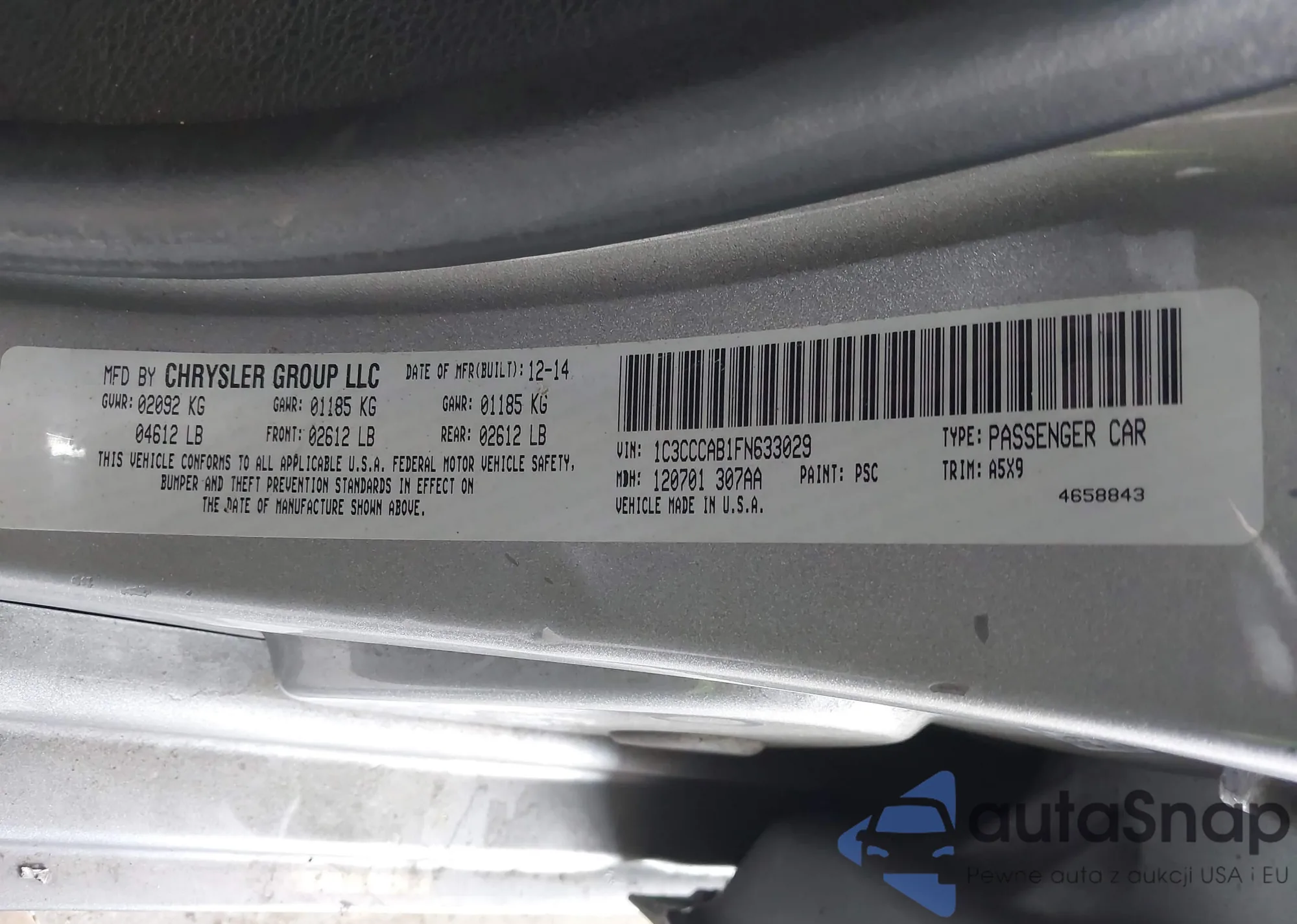 VIN: 1C3CCCAB1FN633029