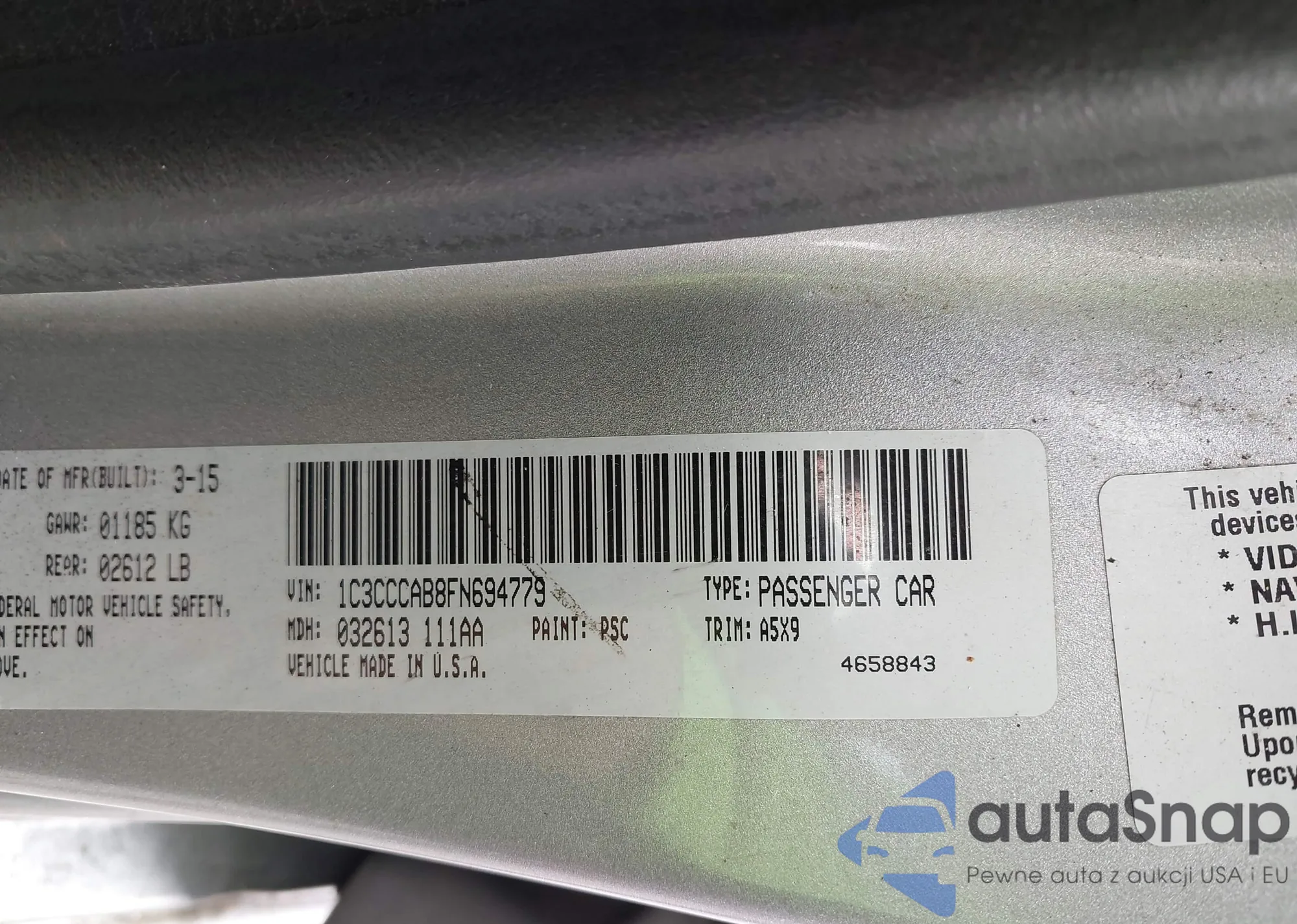 • VIN: 1C3CCCAB8FN694779
