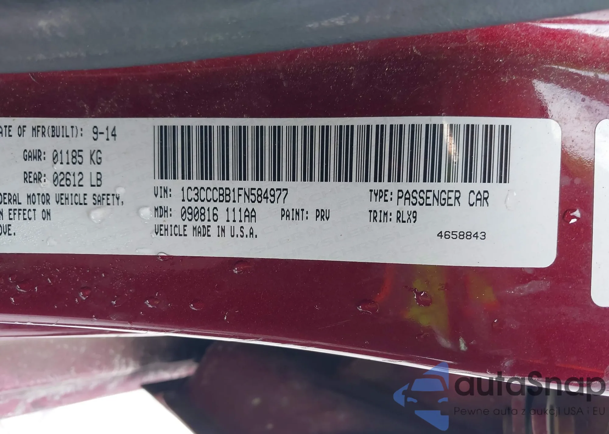 Автомобиль Chrysler 200 2015 (VIN 1C3CCCBB1FN584977) ранее не участвовал в торгах. Документы чистые, пробег соответствует или ниже среднего по рынку. Продаётся страховой компанией — рекомендуем покупку. Доставка в порт займет около 6–8 недель.