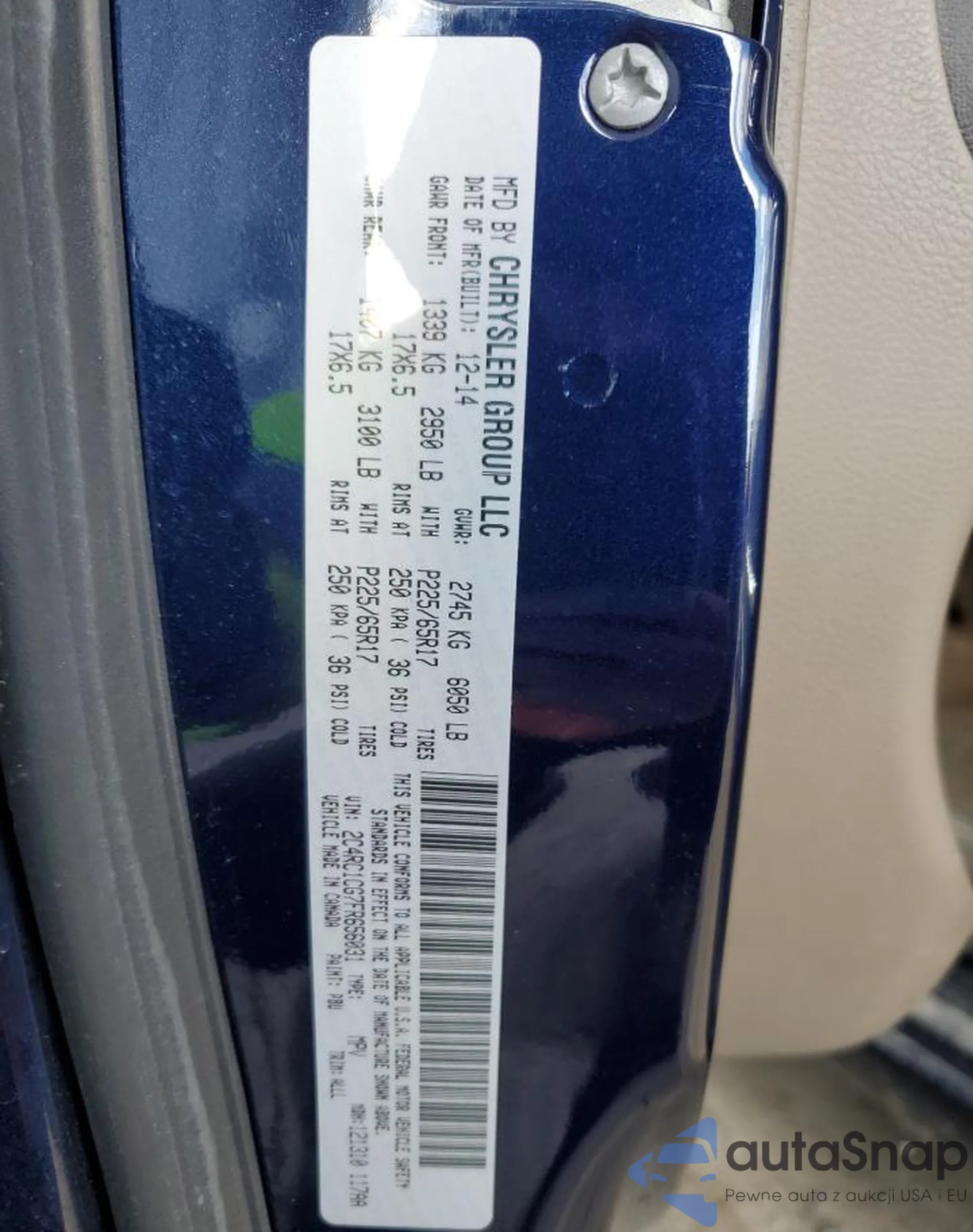 Автомобиль Chrysler Town & Country 2015 (VIN 2C4RC1CG7FR656031) имеет документы, препятствующие регистрации. Могут возникнуть сложности при экспорте и регистрации. Обратитесь к экспертам AutaSnap для поиска альтернатив.