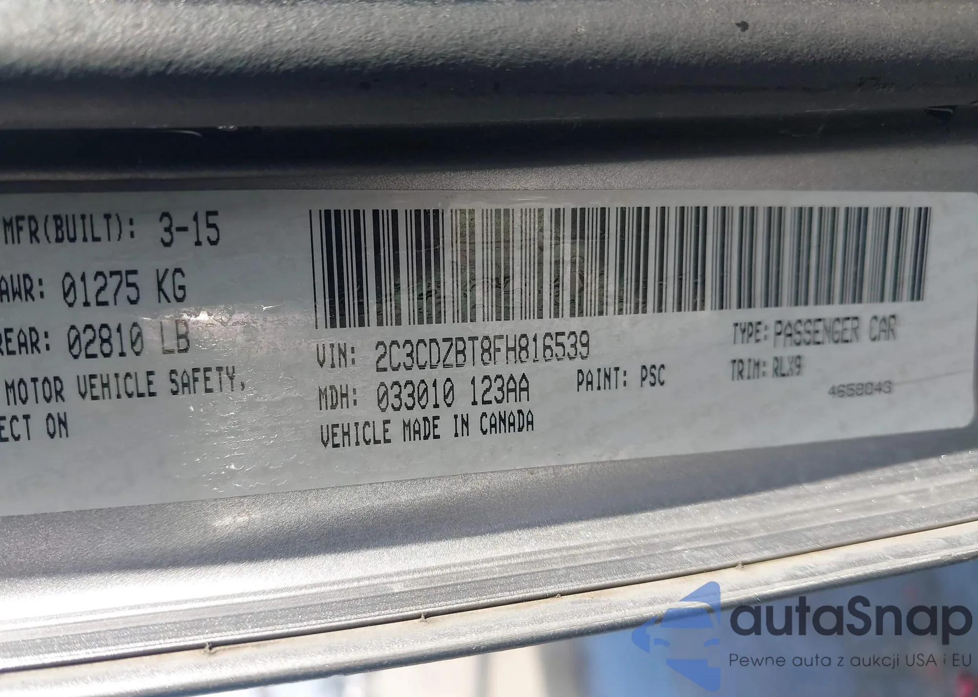 Автомобиль Dodge Challenger 2015 (VIN 2C3CDZBT8FH816539) ранее не участвовал в торгах. Документы чистые, пробег соответствует или ниже среднего по рынку. Продаётся страховой компанией — рекомендуем покупку. Доставка в порт займет около 6–8 недель.