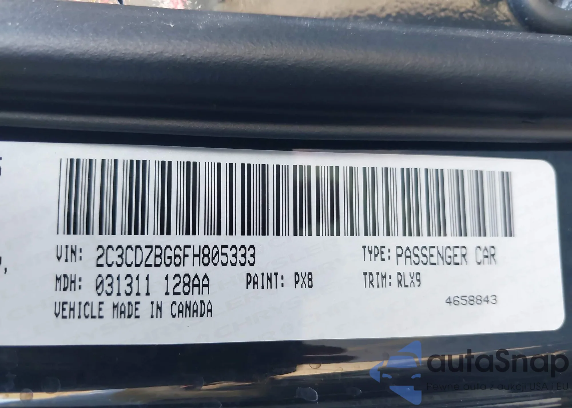 • VIN: 2C3CDZBG6FH805333