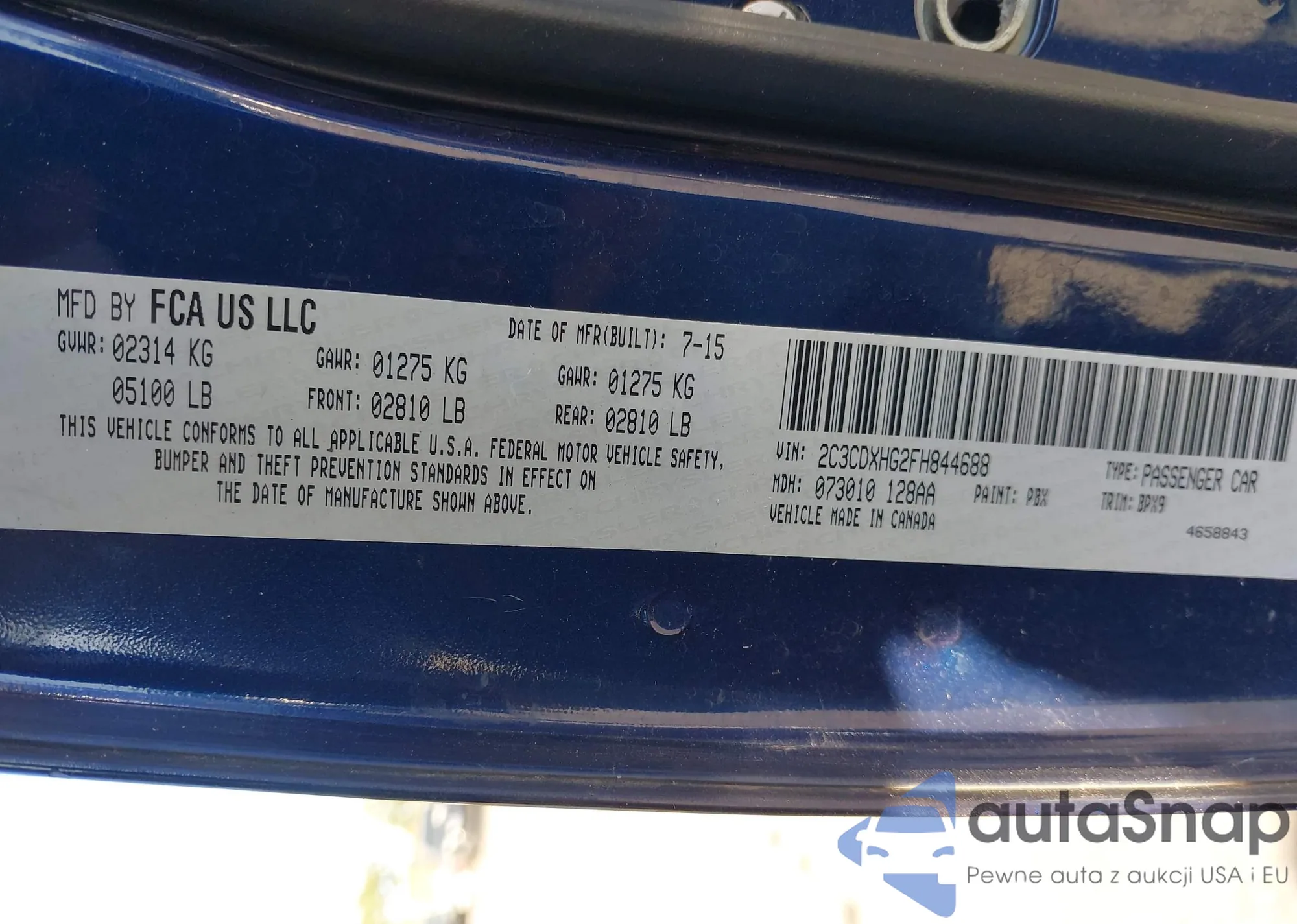 Автомобиль Dodge Charger 2015 (VIN 2C3CDXHG2FH844688) имеет документы, препятствующие регистрации. Могут возникнуть сложности при экспорте и регистрации. Обратитесь к экспертам AutaSnap для поиска альтернатив.