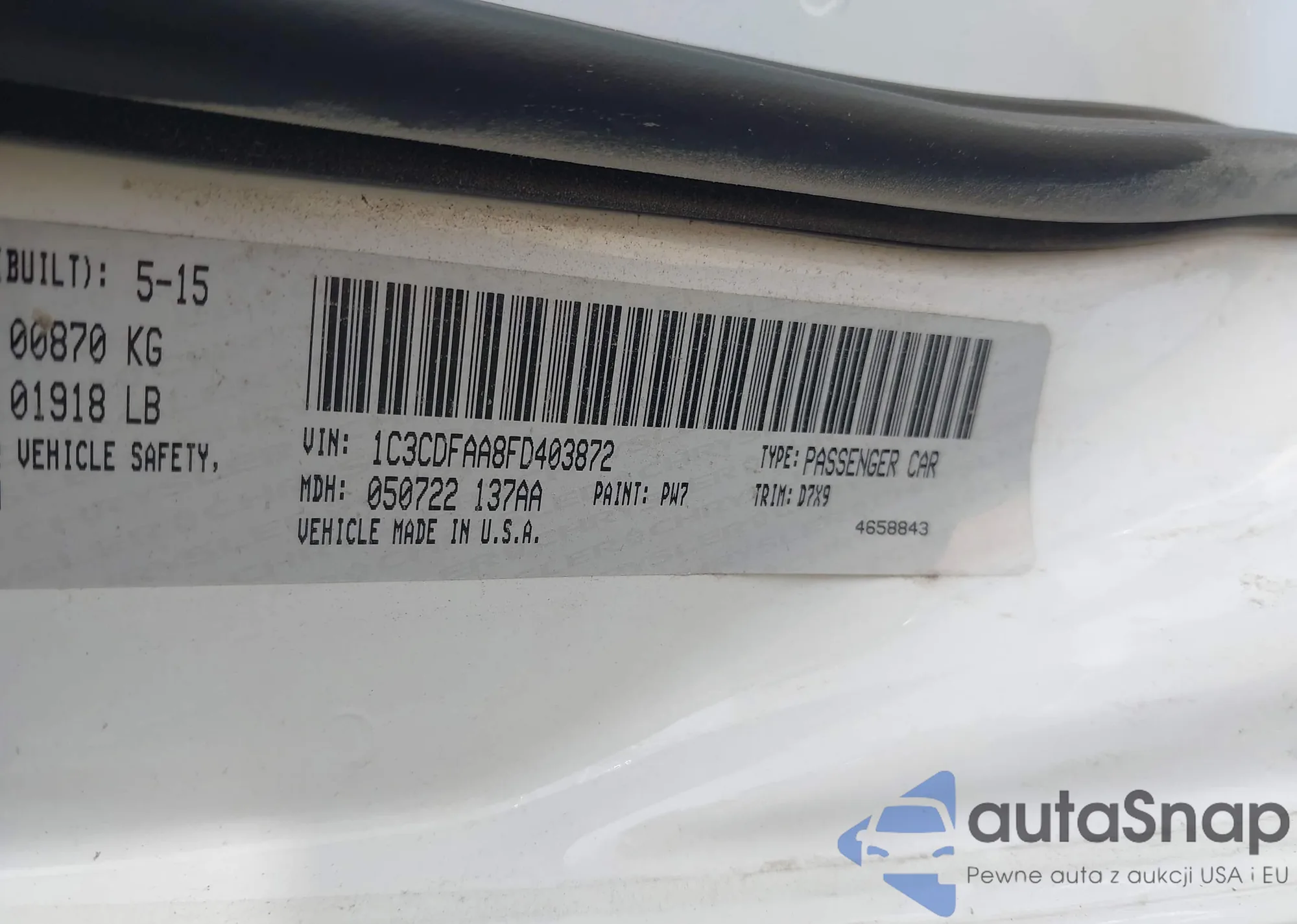 VIN: 1C3CDFAA8FD403872