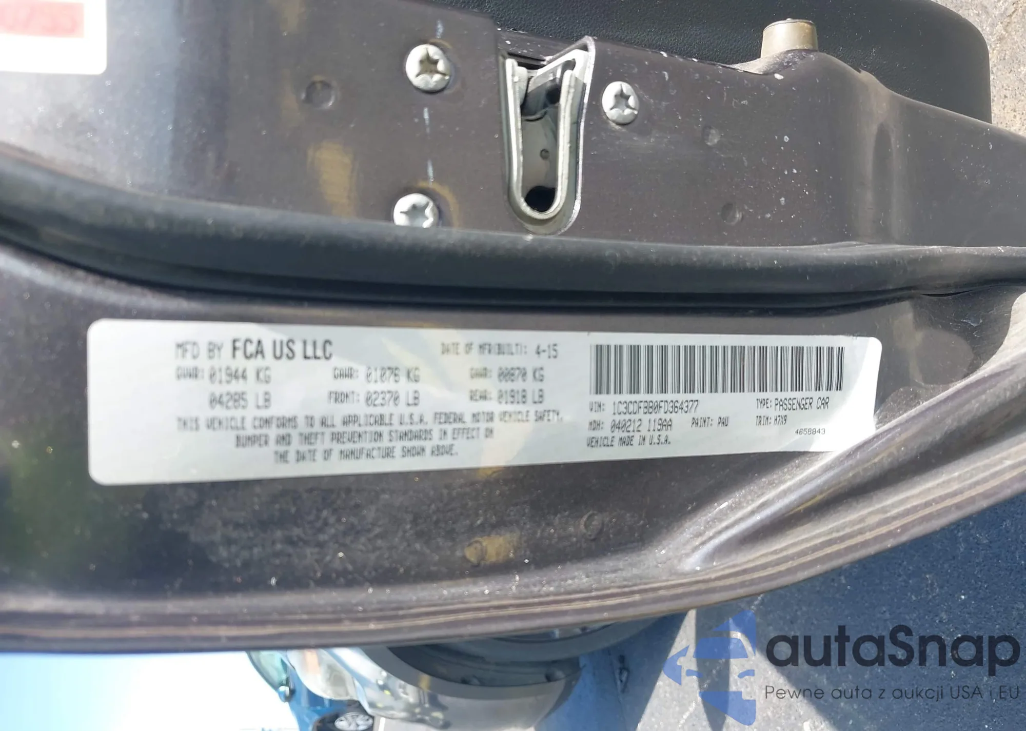 VIN: 1C3CDFBB0FD364377